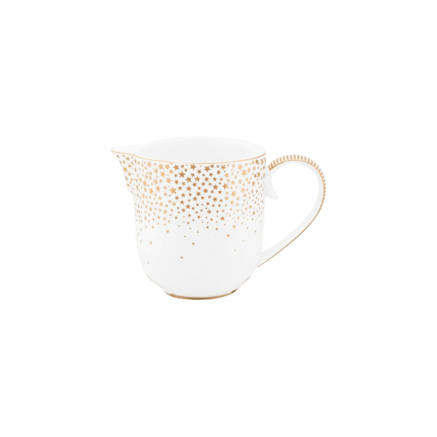 Šī svētku piena krūze ir dekorēta ar Royal Winter White dizainu, kas ir lieliski piemērota jūsu trauku kolekcijai svētkiem. Krūze ir dekorēta ar dažāda izmēra zvaigznītēm un rokturis rotāts ar zeltainām svītrām