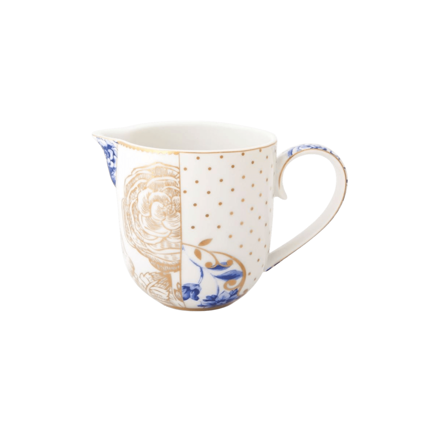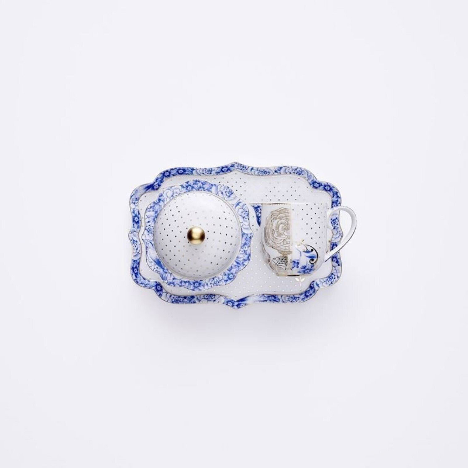 Royal White ir izsmalcināts dizains ar smalkiem zilas krāsas elementiem un zeltainām detaļām.