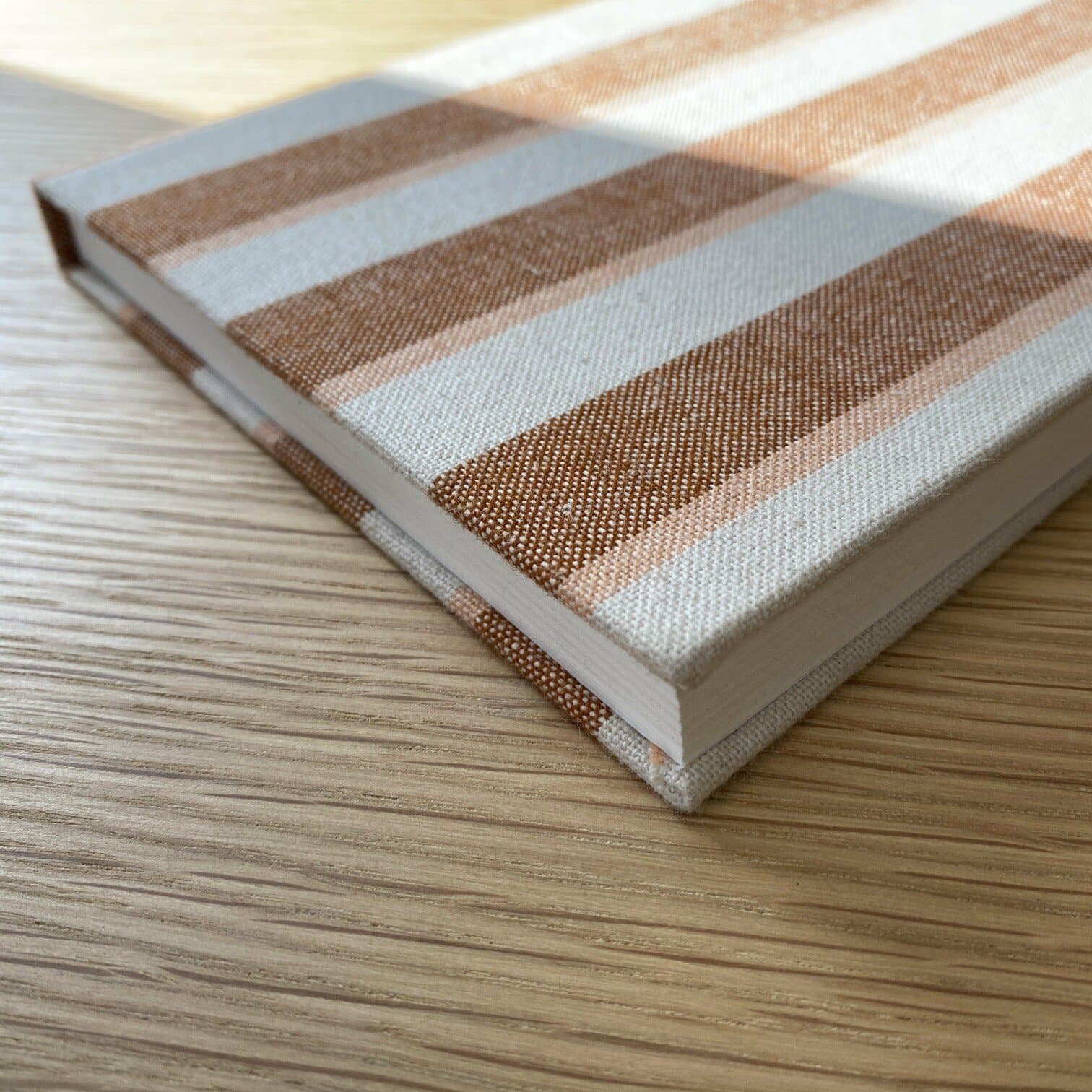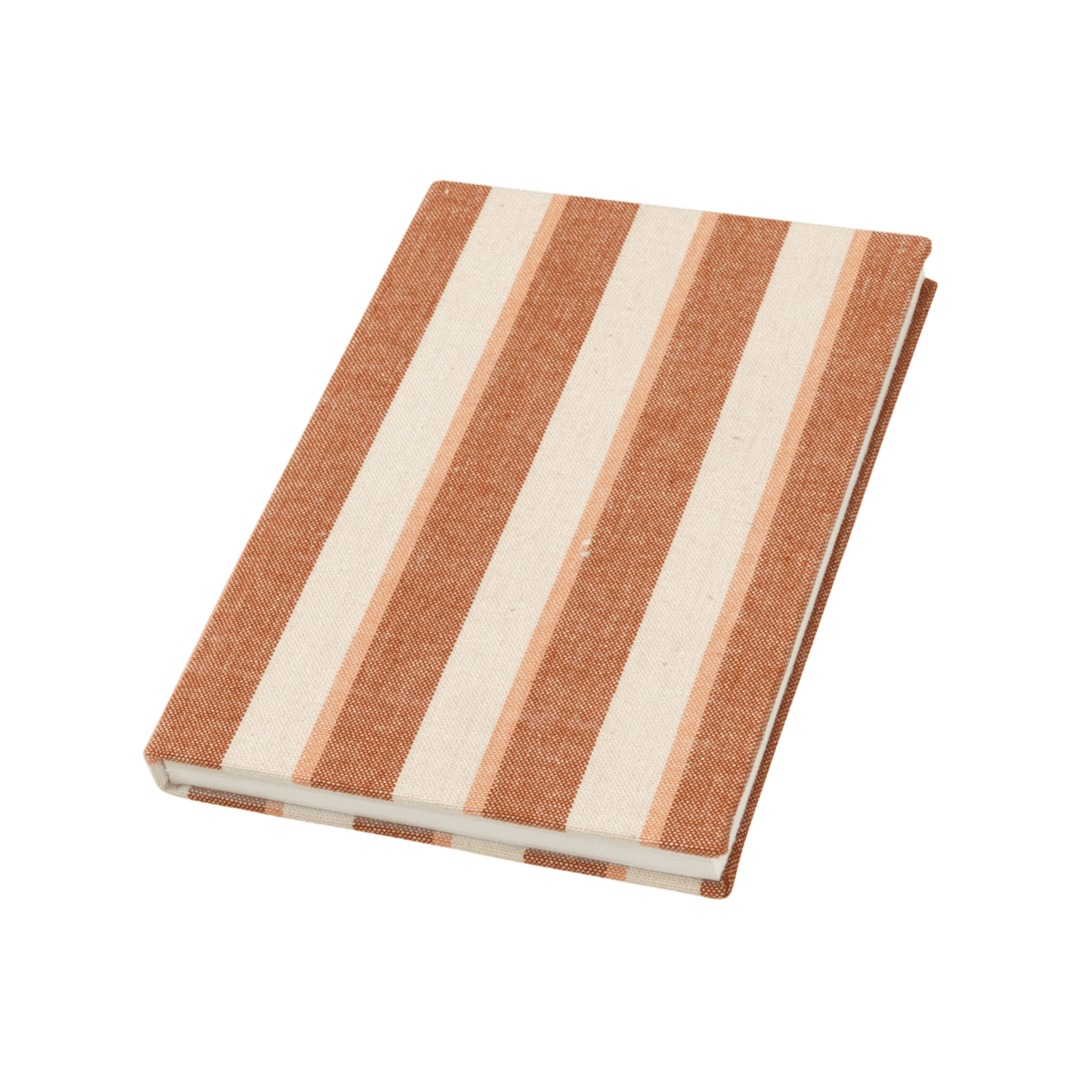Piezīmju blociņš ar auduma cietajiem vākiem, lapas ar līnijām.