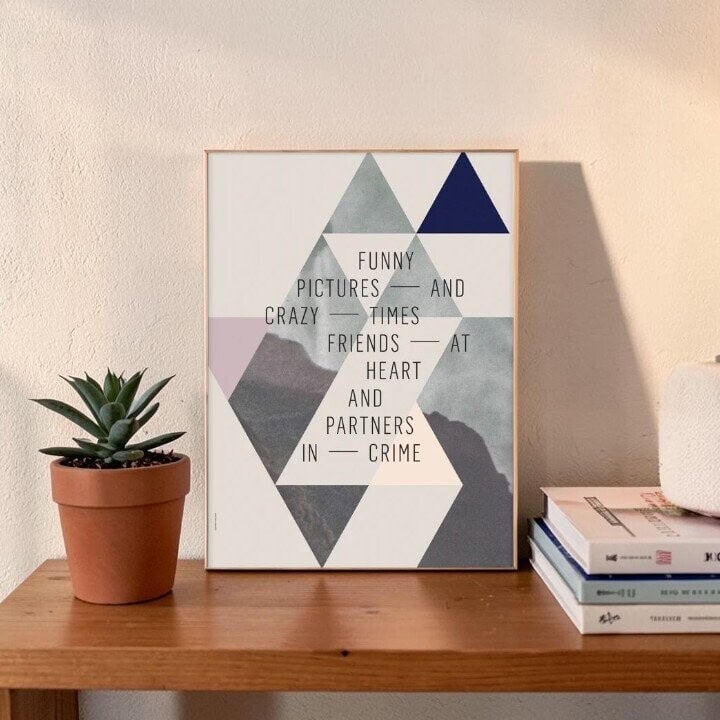 Stilīgs, mūsdienīgs plakāts ar ģeometrisku dizainu un iedvesmojošu tekstu par draudzību un kopīgiem piedzīvojumiem. Maigi toņi un minimālistiskas formas lieliski iederēsies gan viesistabā, gan guļamistabā vai darba telpā, piešķirot interjeram siltumu un personību.