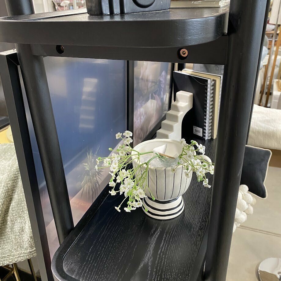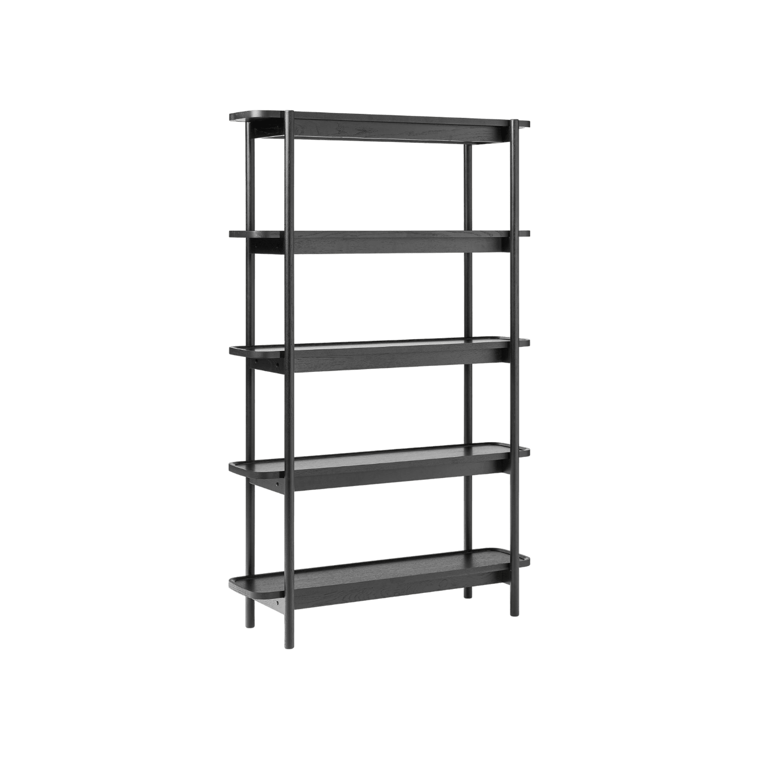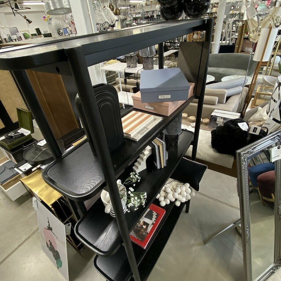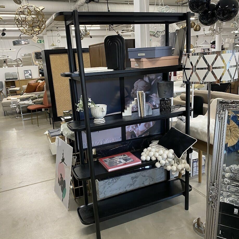 Melns atvērta tipa ozolkoka plaukts ar 5 līmeņiem. Lieliski izskatīsies pie gaišas sienas, noteikti būs arī laba izvēle, ja nepieciešams veikt telpā zonējumu. Kvalitatīvs, mūsdienīga dizaina elements.