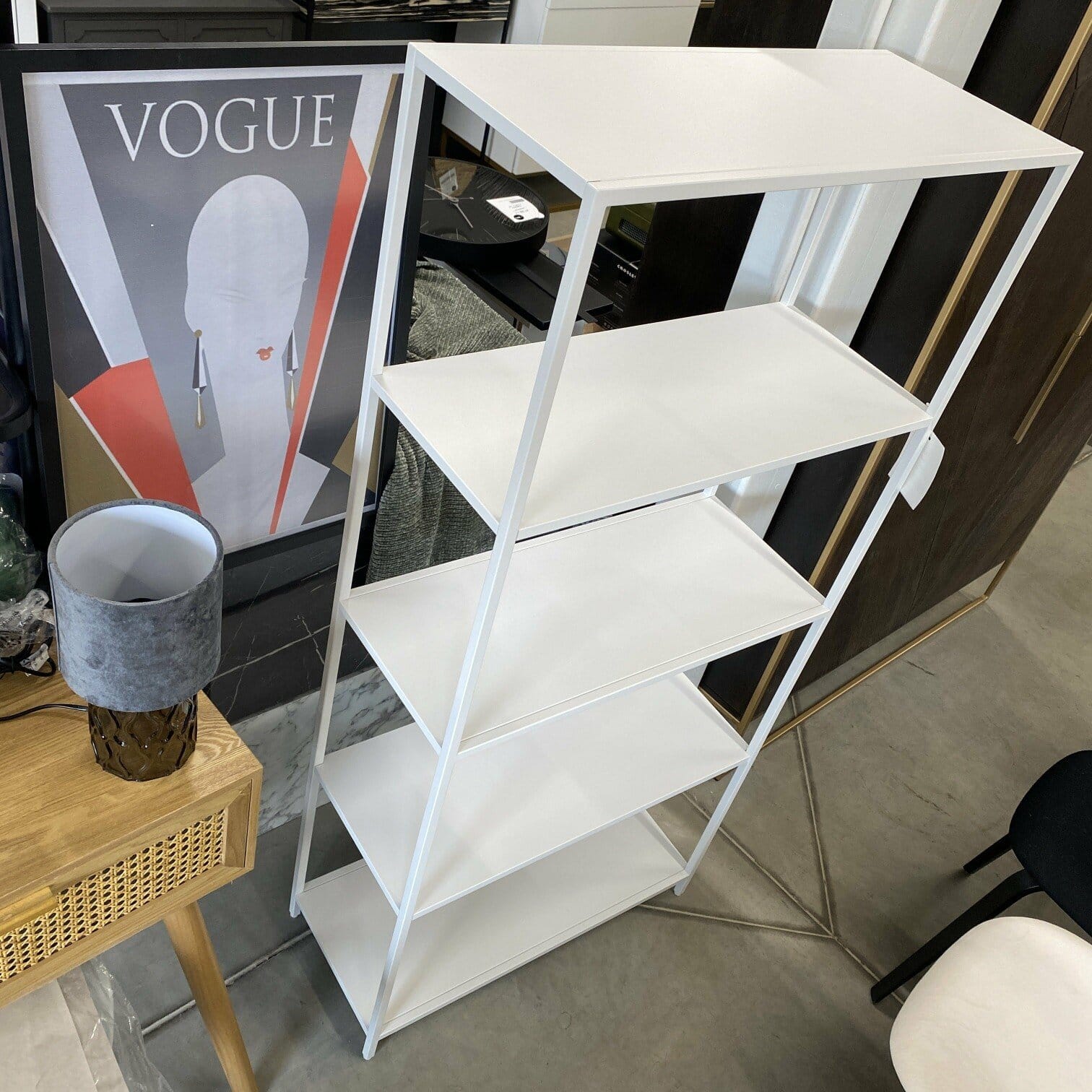 Balts metāla atvērta tipa plaukts ar 5 līmeņiem