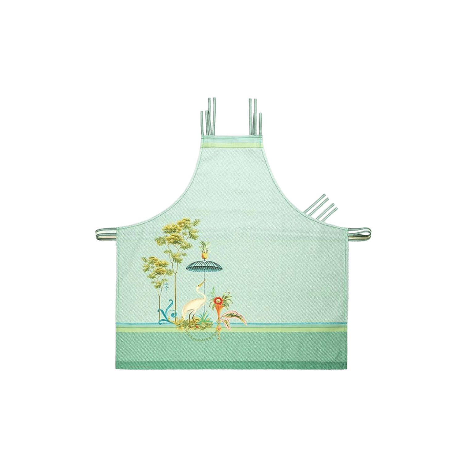 Šo bagātīgi dekorēto virtuves priekšautu rotā unikāli koki, ziedi un gārnis no kolekcijas Jolie. Priekšauts ir viegli sasienams.