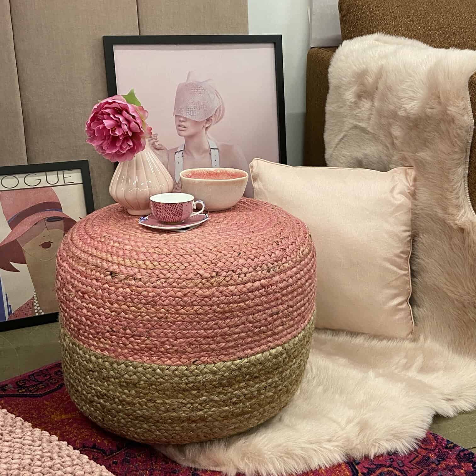 Džutas pufs. Der arī kā kāju balsts vai kā galdiņš.