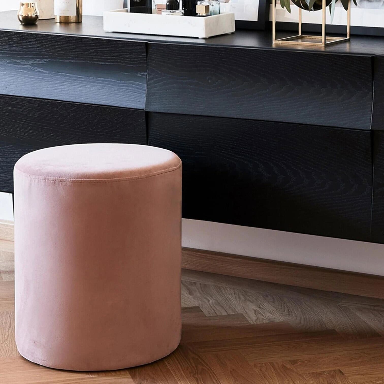 Gaiši rozā velūra pārklājums piešķir pufam elegantu izskatu. Jāņem vērā, ka velūra tonis var mainīties atkarībā no gaismas un virsmas virziena. Audums ir izturīgs pret nodilumu (Martindale tests – 25 000 ciklu), kas padara pufu piemērotu intensīvai ikdienas lietošanai. Mīkstā putu pildījuma blīvums ir 25 kg/m³, savukārt izturīgais saplākšņa rāmis nodrošina stabilitāti un ilgmūžību.