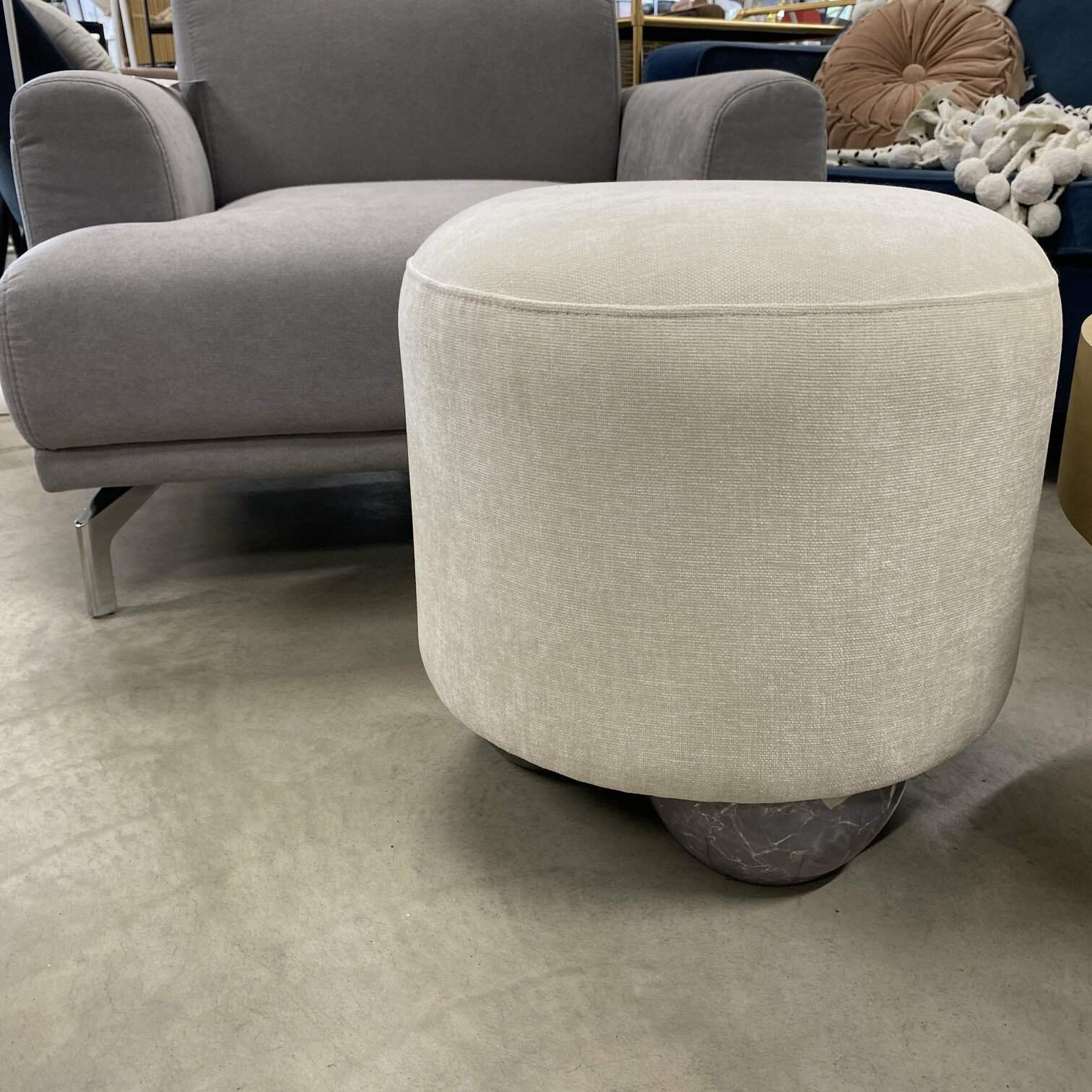 Pufs ar marmora imitācijas kājām, elegants papildinājums interjeram.
