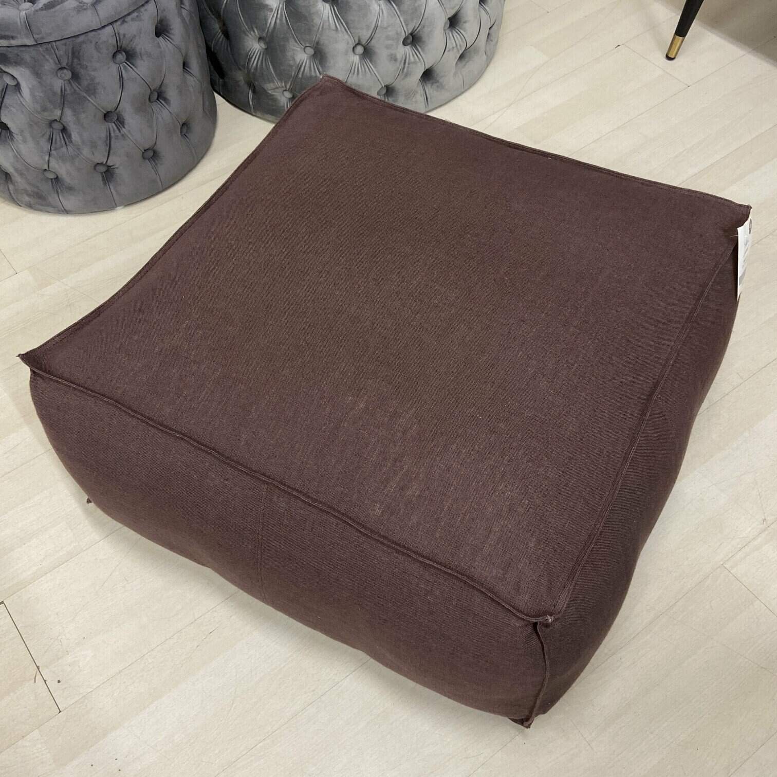 Pufs Safrāna, ar lina pārvalku. Iederēsies Boho stila interjeros, telpās, kur priekšroka tiek dota lietām no dabīgiem materiāliem, domājot par ilgtspēju.
