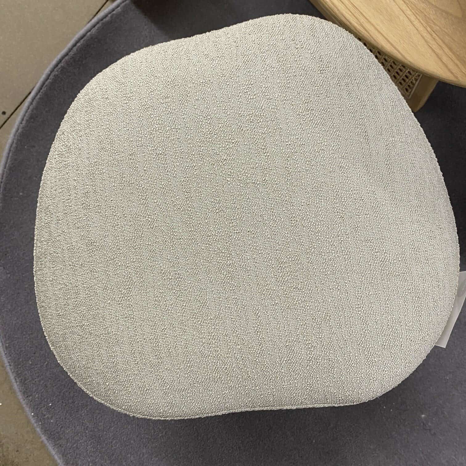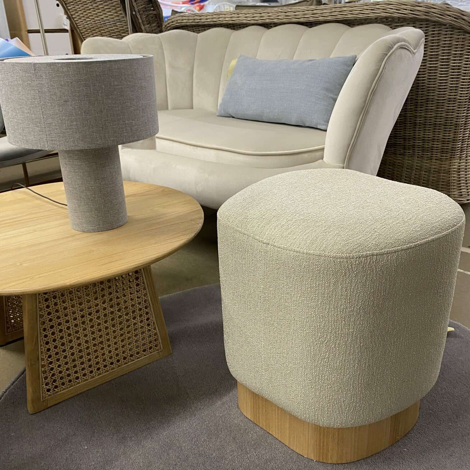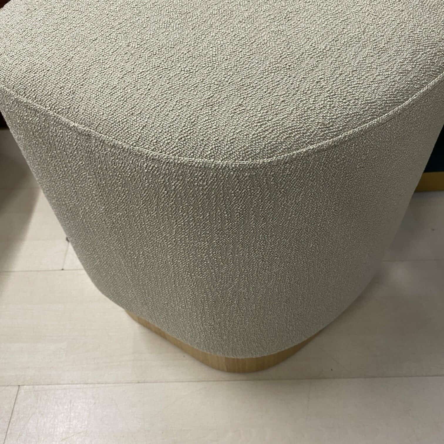 Neregulāras formas pufs ar koka pamatni, gaišā matcha zaļā krāsā. Atvēsinošs akcents tavā telpā.