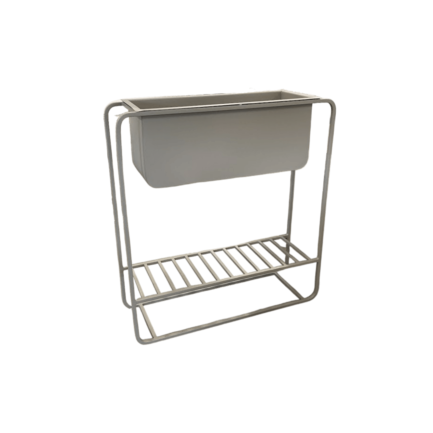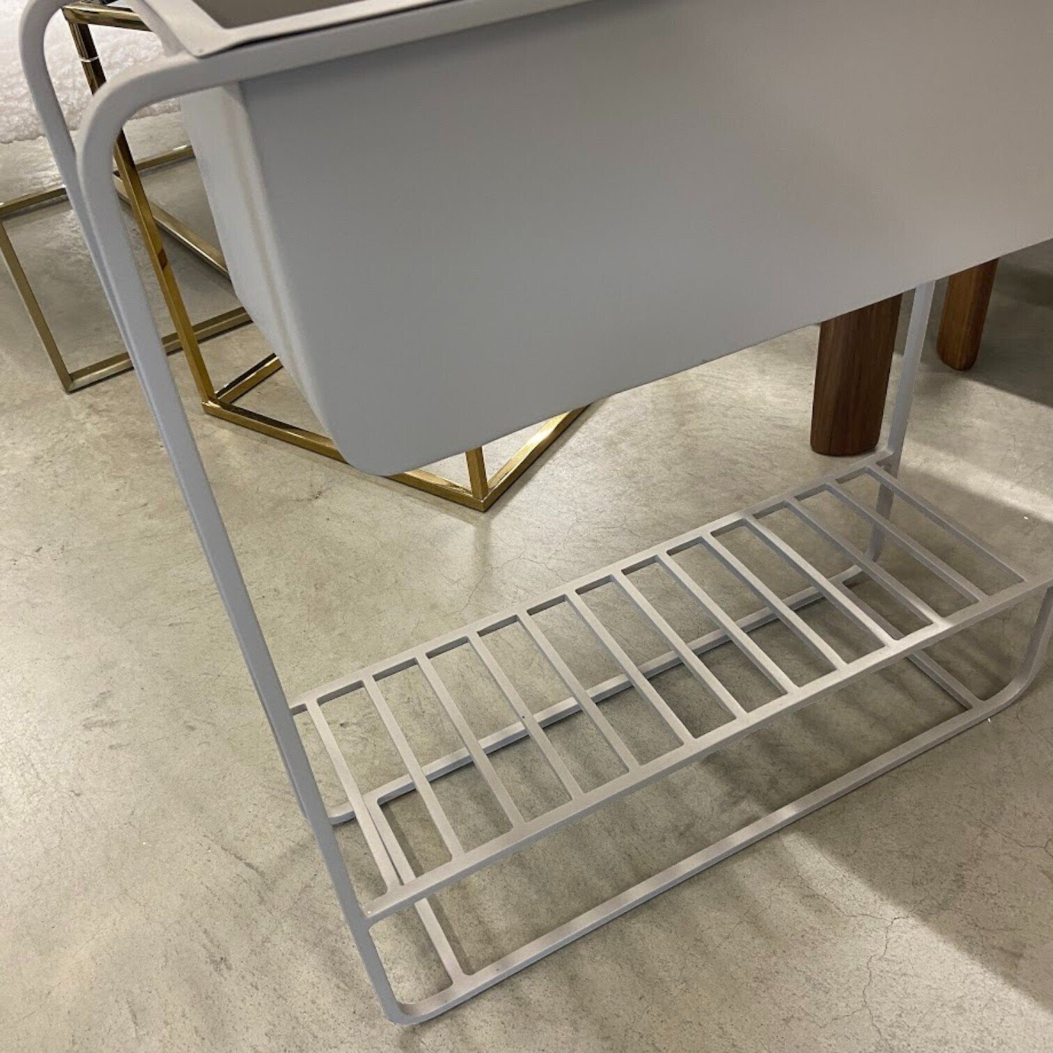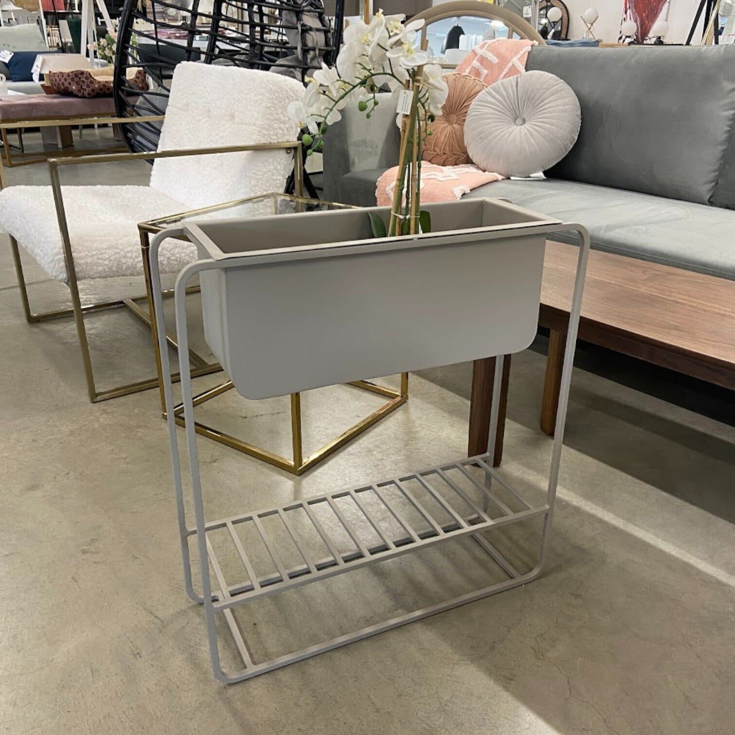 Šis metāla puķu pods lieliski izskatīsies ne tikai iekštelpās, bet arī uz terases. Tam ir uzglabāšanas plaukt.