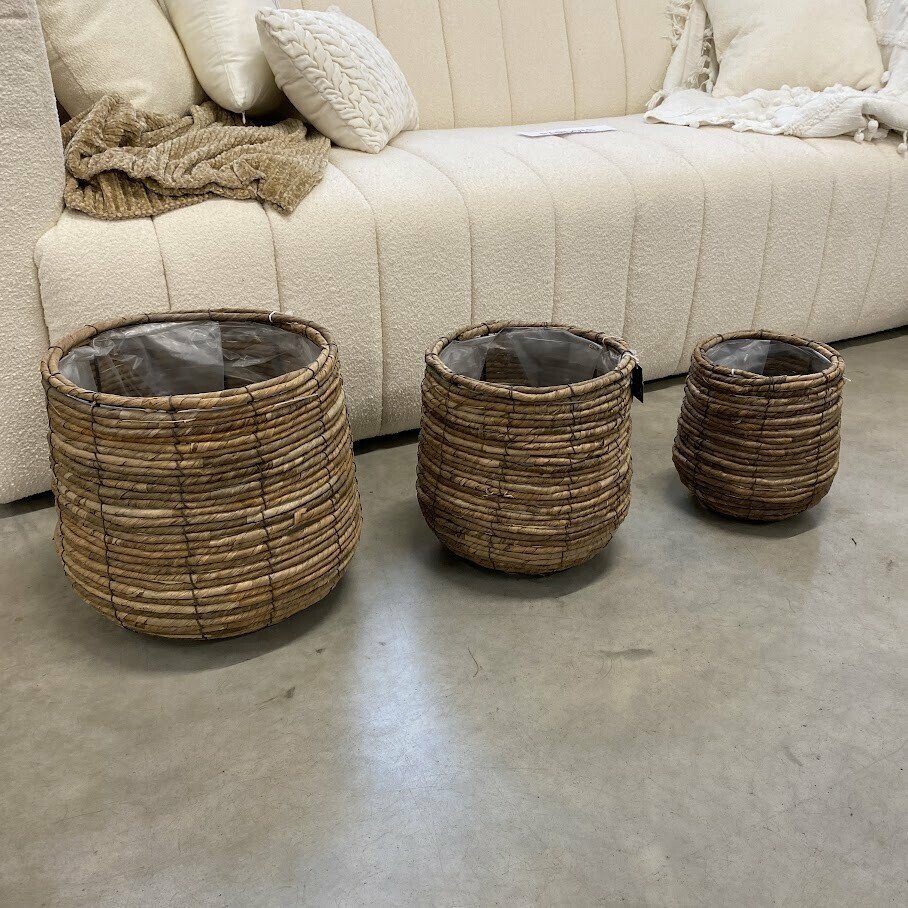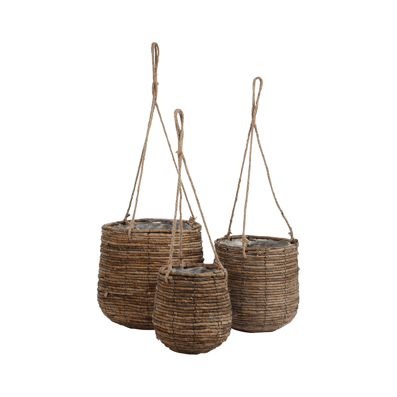 Ja meklējat ko atšķirīgu no standarta puķu podien, tad šie pītie, iekaramie puķu podi būs lieliska alternatīva. Pateicoties banānu lapām, izturīgajiem groziņiem ir dabisks izskats un tie ir roku darbs. Turklāt neitrālā brūnā krāsa iederēsies jebkurā interjerā. Groziem iekšpusē ir plastmasas oderējums, tāpēc jūs varat bez raizēm laistīt augus. Uzkariniet tos uz komplektā iekļautās virves un izveidojiet zaļo oāzi savās mājās.