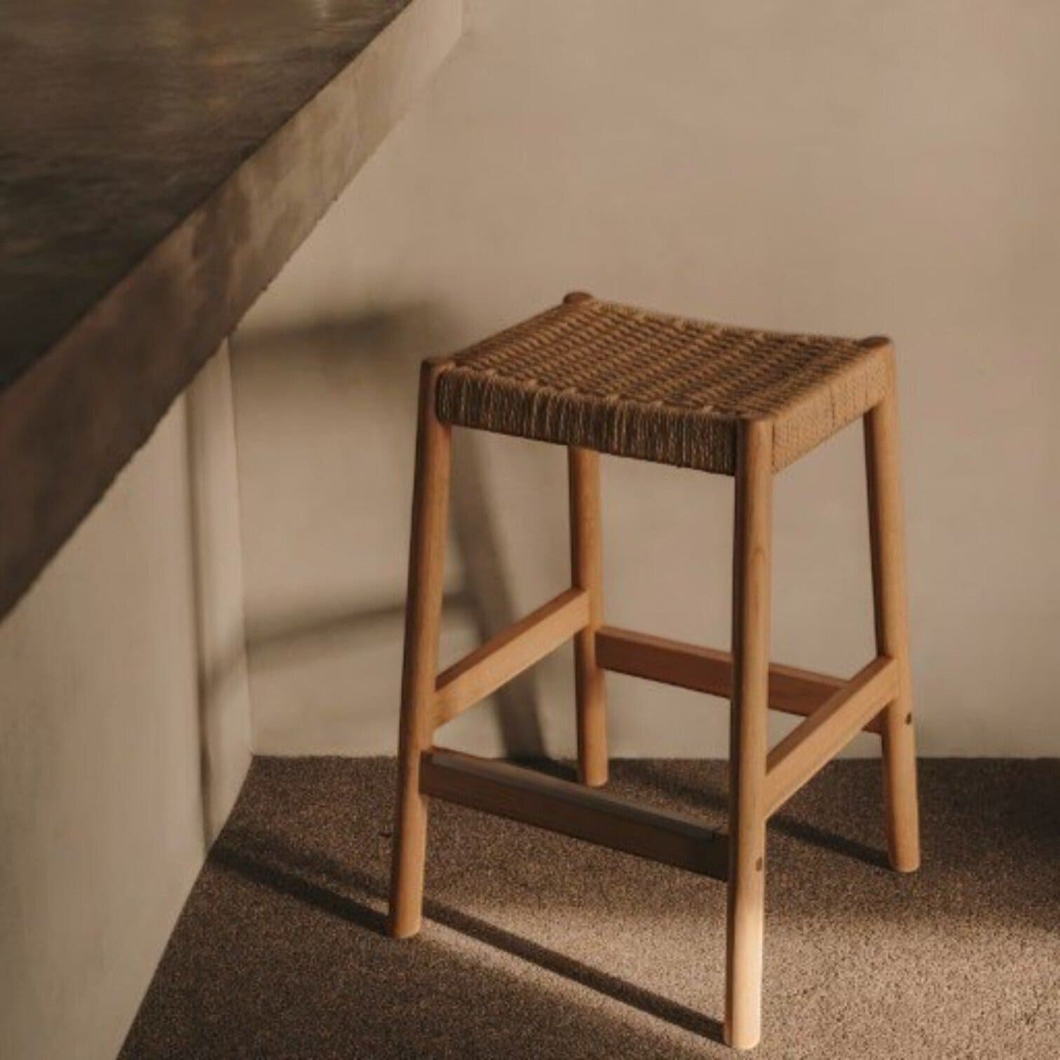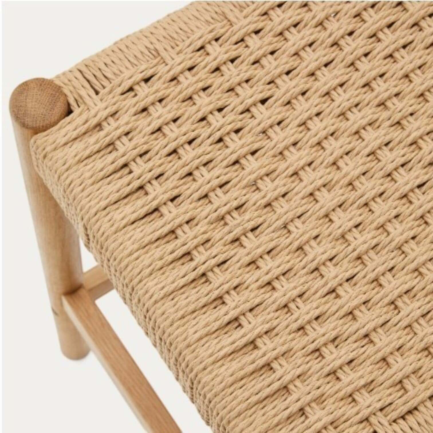 Sēdvirsma veidota no ar rokām pītas papīra auklas, kas nodrošina gan komfortu, gan izturību. Dabīgie materiāli un rūpīgi amatniecības procesi piešķir krēslam autentisku un siltu izskatu, kas lieliski iederēsies virtuvē, pie virtuves salas vai pusbāra galda.