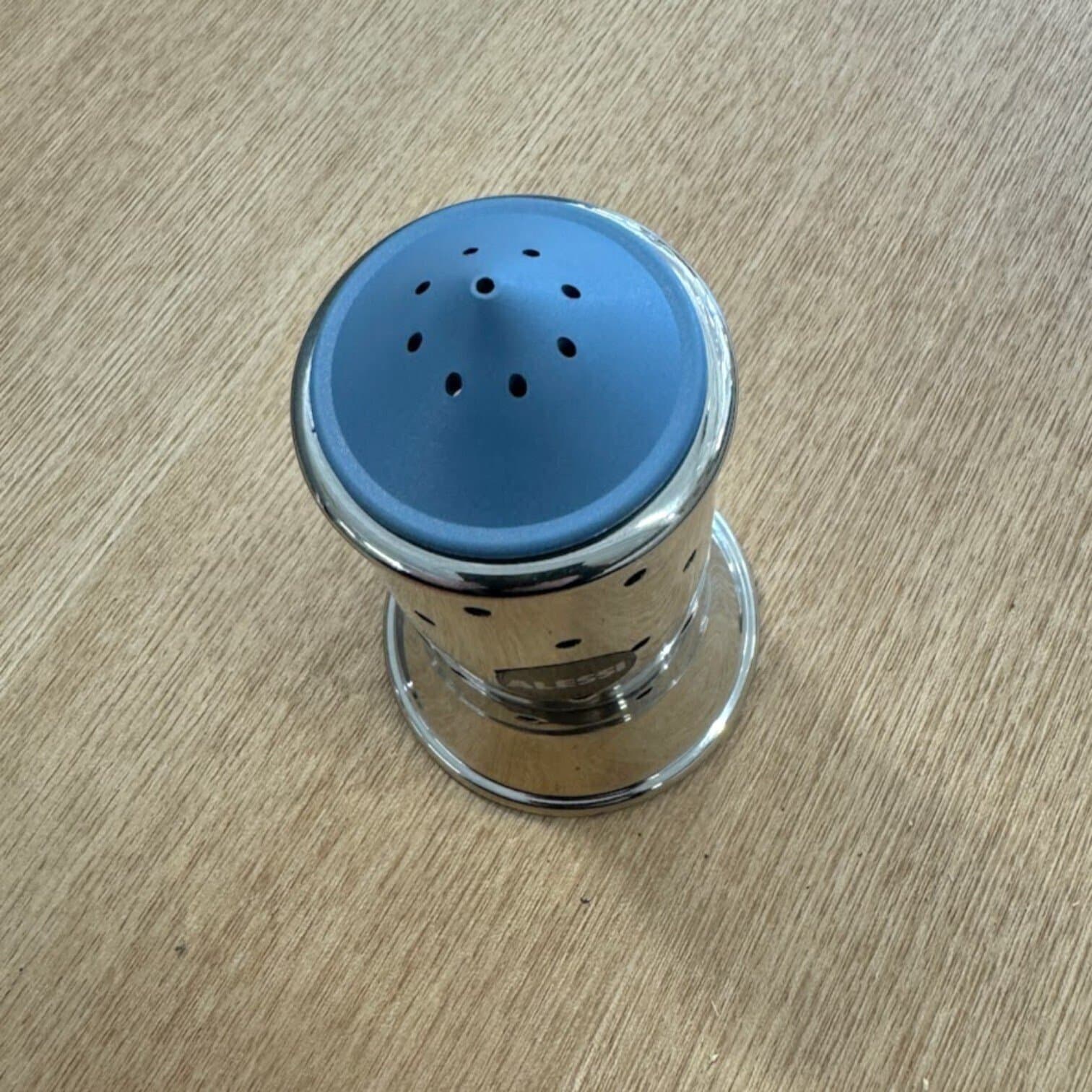 Sāls trauka dizainu iedvesmojusi raķetes forma, kura tika radīta sadarbībā ar pasaulslavenu arhitektu Maiklu Greivsu. Tas ir izgadavots no nerūsējošā tērauda un pārklāts ar mirdzošu spoguļpulētu apdari, savukārt vāks ir izgatavots no krāsainiem poliamīda termoplastiskiem sveķiem. Šajā kolekcijā ideāla kombinācija ir piparu dzirnaviņas un sāls trauks, kas lieliski iederēsies uz jebkura galda.