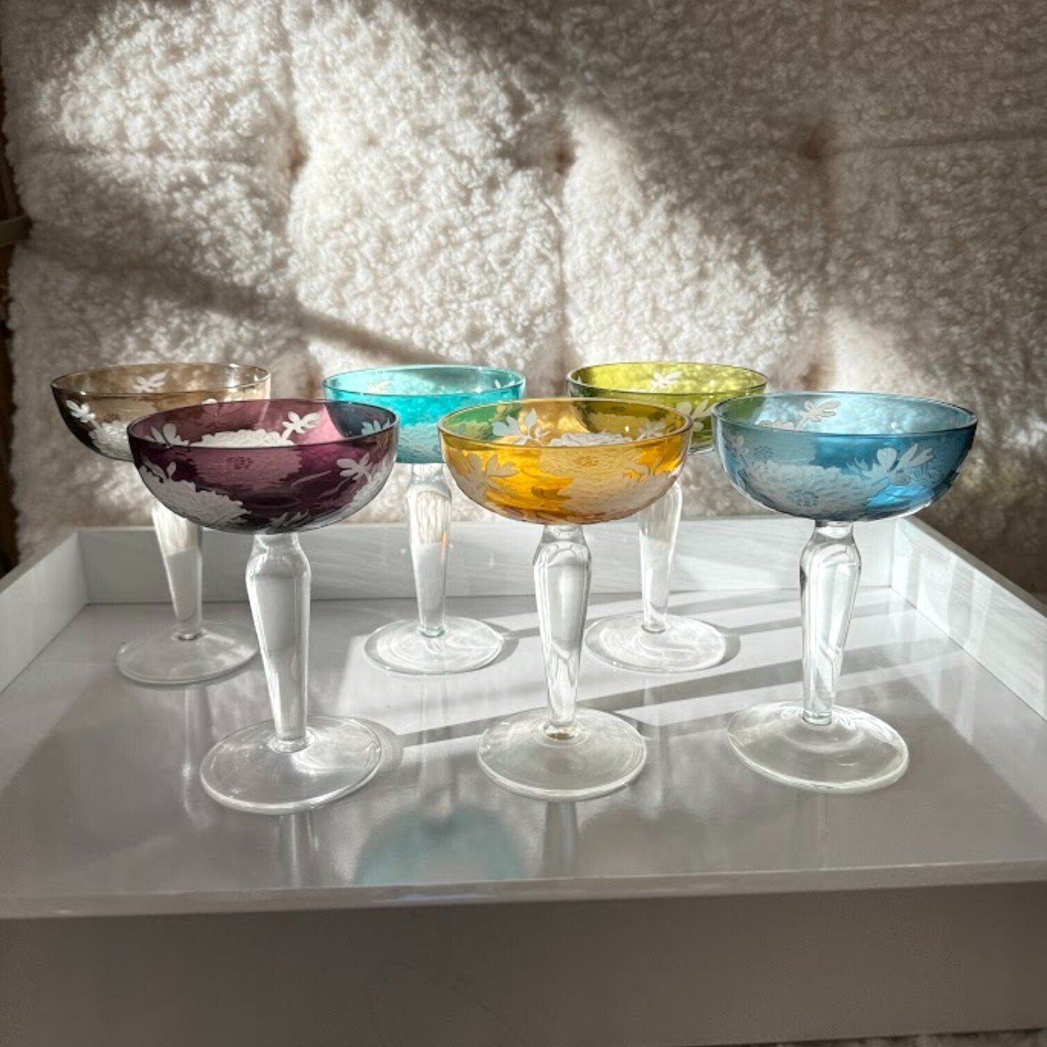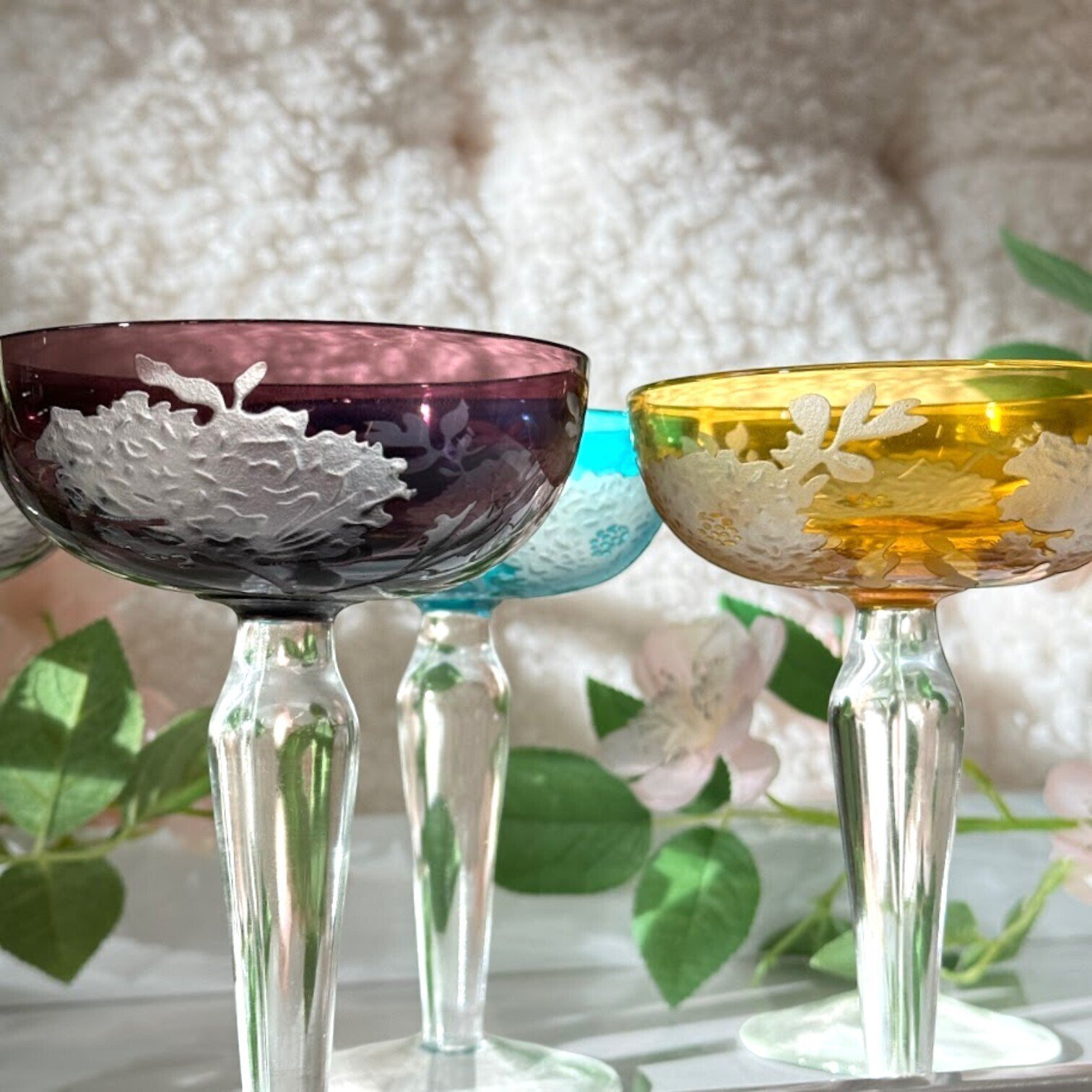 Glāzes ir izgatavotas no augstas kvalitātes stikla, nodrošinot ne tikai izturību, bet arī lielisku caurredzamību, kas ļauj jums izbaudīt šampanieša burbuļu deju. Ar maigu, ziedu iedvesmotu rakstu, šīs glāzes piešķir katram dzērienam īpašu sajūtu.