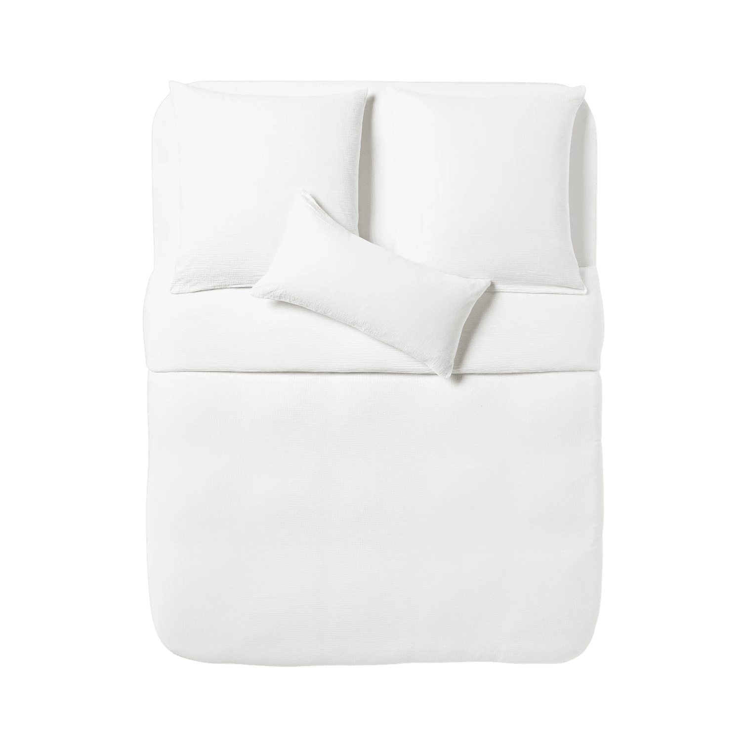 Klasiskais, tīrais baltais tonis piešķir pārvalkam īpašu šarmu – tas vienmēr būs aktuāls un lieliski iekļausies jebkurā interjerā. Praktiskais pogu aizdares risinājums nodrošina ērtu lietošanu un elegantas līnijas.
