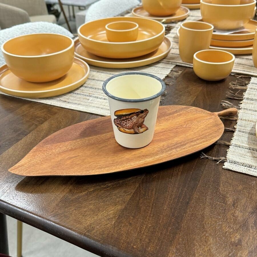 Lapas formas servēšanas paplāte, ko noteikti var arī izmantot kā vienkārši papildu dekoru savās telpās. Var pasniegt gan ēdienu, gan vienkārši to izmantot kā vietu, kur tiek novietotas mājas/auto atslēgas, jo tās vienmēr atrod iespēju kā nozust brīdī, kad ir jāsteidzas ārā pa durvīm.