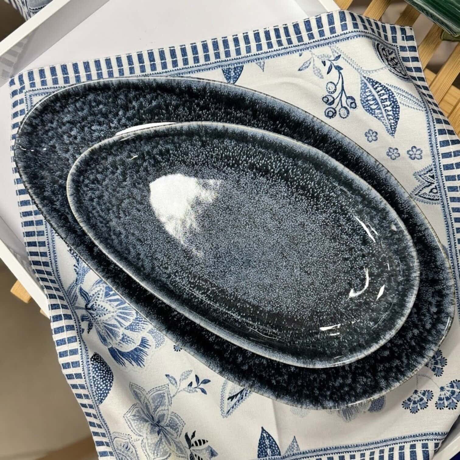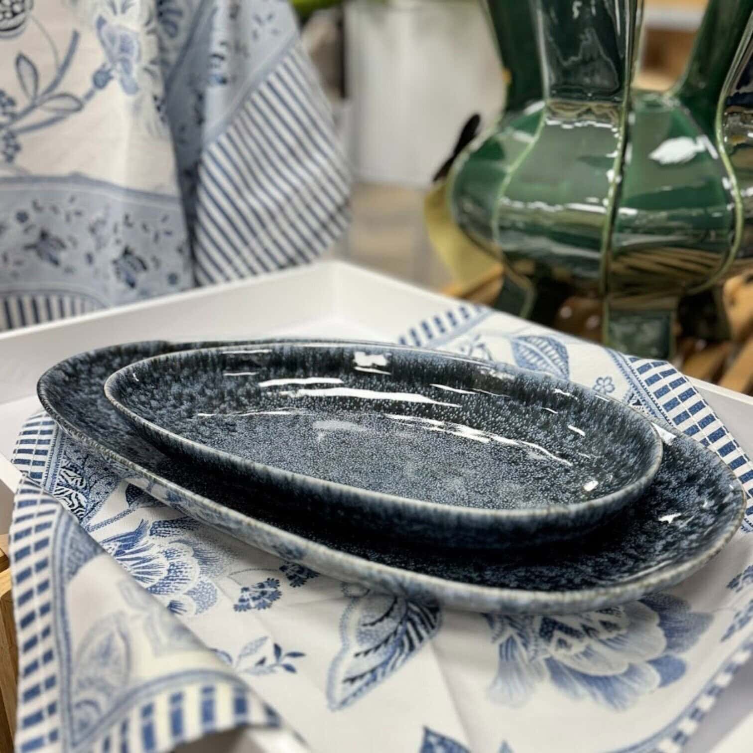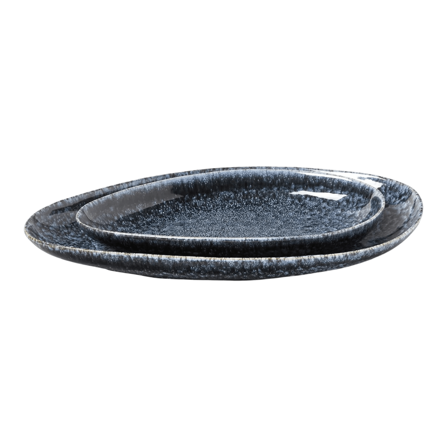 MACEY servēšanas šķīvji apvieno augstvērtīgu glazētu akmensmasu ar plūstošām, organiskām formām, radot dabiskuma un elegances harmoniju. Roku darinātā, maigi teksturētā virsma un spīdīgās zilās nokrāsas piešķir katram šķīvim unikālu raksturu, padarot tos par izteiksmīgu galda dekoru. Ideāli piemēroti uzkodām, augļiem vai desertiem – šie šķīvji piešķir ikdienas maltītēm īpašu noskaņu. Komplekts satur 2 šķīvjus. Izgatavoti Portugālē, piemēroti lietošanai mikroviļņu krāsnī un trauku mazgājamajā mašīnā.