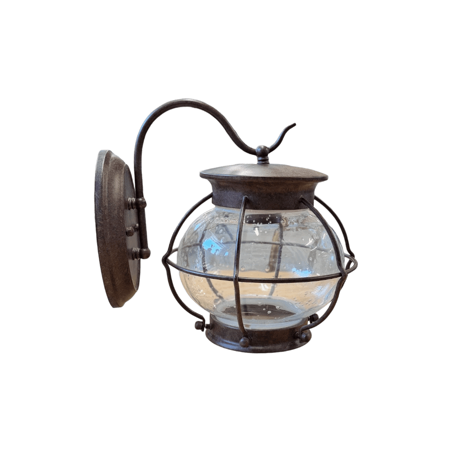Sienas lampa Maine apvieno klasisku laternas dizainu ar klasisku konstrukciju, radot elegantu un vienlaikus funkcionālu apgaismojuma risinājumu. Izgatavota no izturīga metāla ar antīkā bronzas toņa apdari un stikla kupolu ar burbuļveida efektu, šī lampa piešķir Jūsu ārtelpām siltu un aicinošu noskaņu.