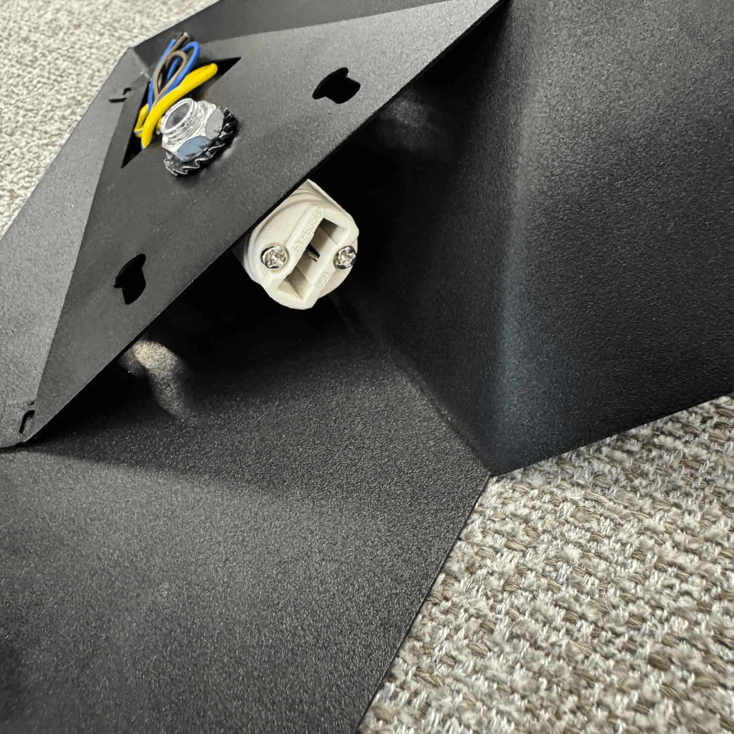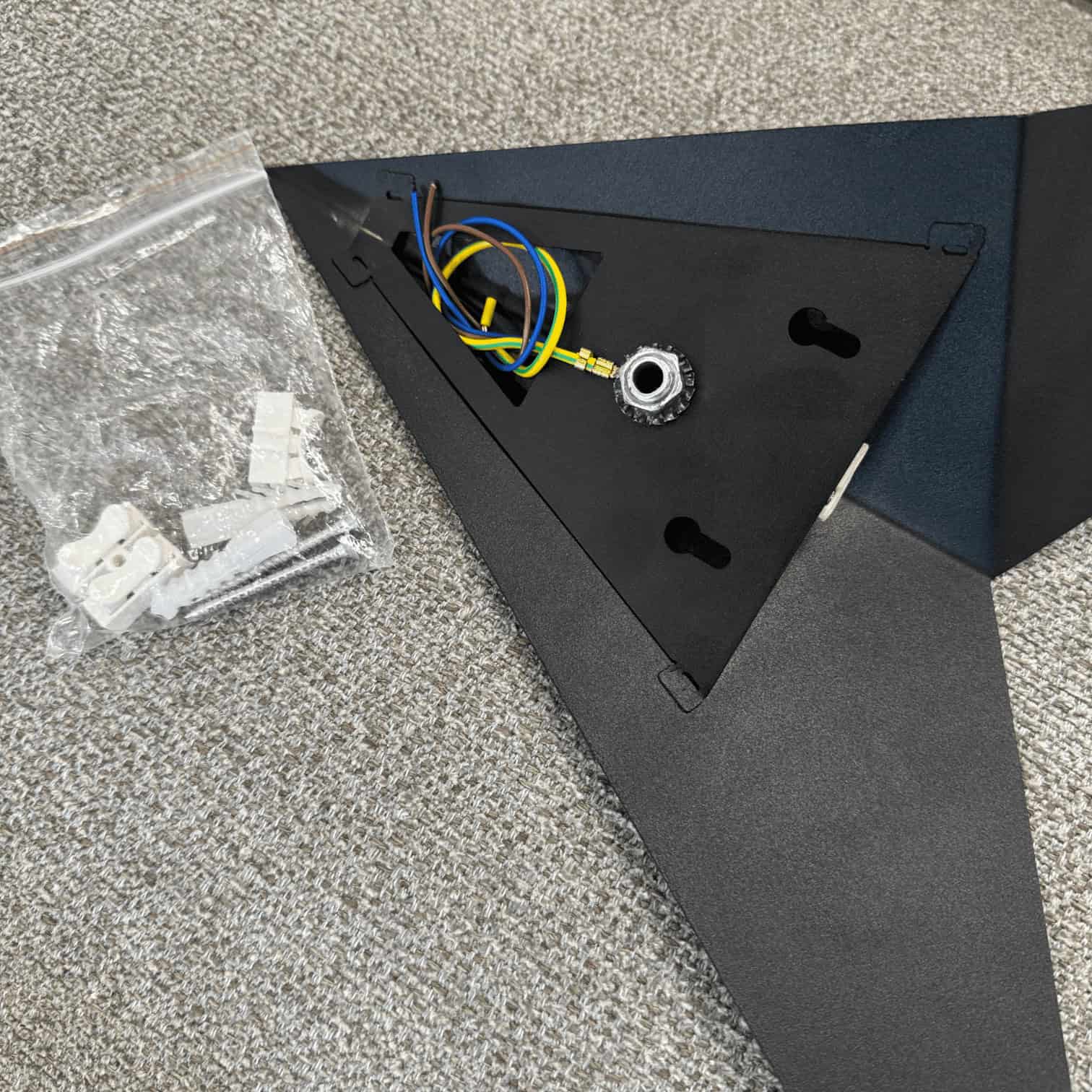 Šī ir moderna, minimālistiska stila sienas lampa ar unikālu lauzta trīsstūrveida dizainu. Tā ir izgatavota no metāla, un tās ģeometriskā forma piešķir telpai eleganci un mūsdienīgumu.