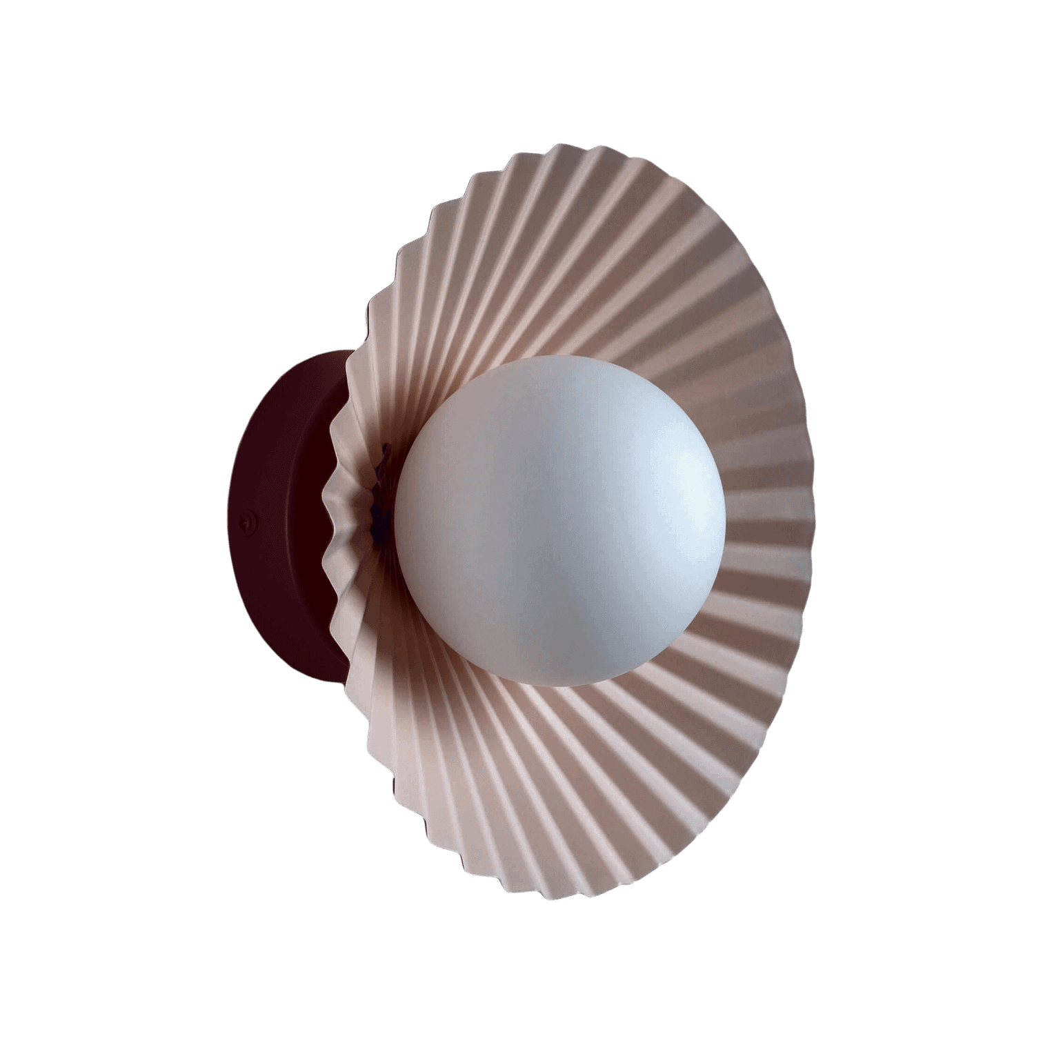 Eleganta un mūsdienīga sienas lampa, kas piešķirs interjeram izsmalcinātu akcentu. Lampai ir matēts balts kupols, kas nodrošina maigu un vienmērīgu gaismas izkliedi, radot patīkamu atmosfēru telpā. Dekoratīvais, viegli viļņotais elements piešķir dizainam īpašu raksturu, savukārt bordo krāsas korpuss piešķir siltu un stilīgu kontrastu.