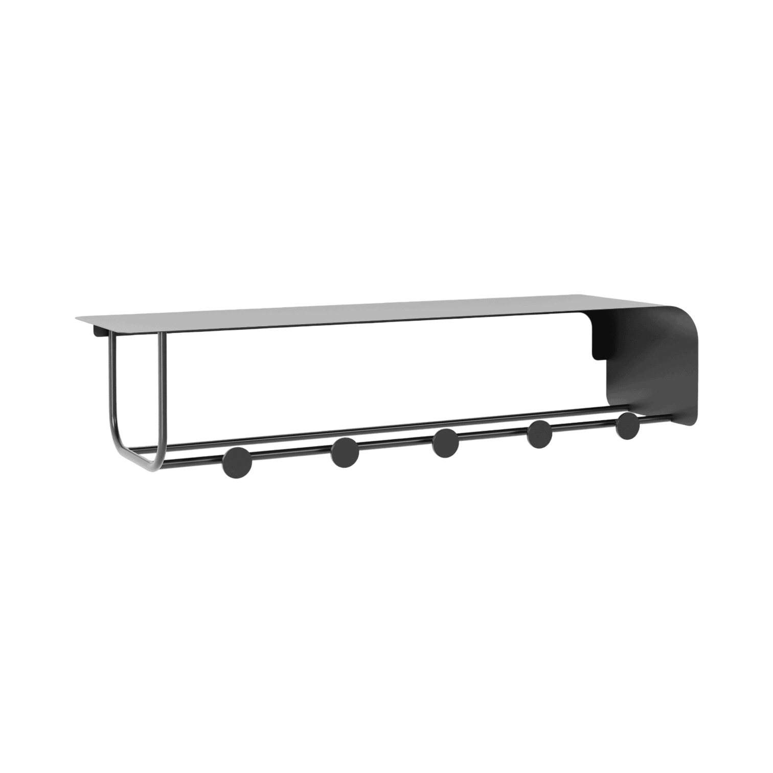 Plaukta augšējā daļa nodrošina vietu cepurēm, somām vai dekoratīviem priekšmetiem, savukārt apakšā izvietotie 5 metāla āķi ir piemēroti apģērbu, dvieļu vai aksesuāru pakarināšanai.