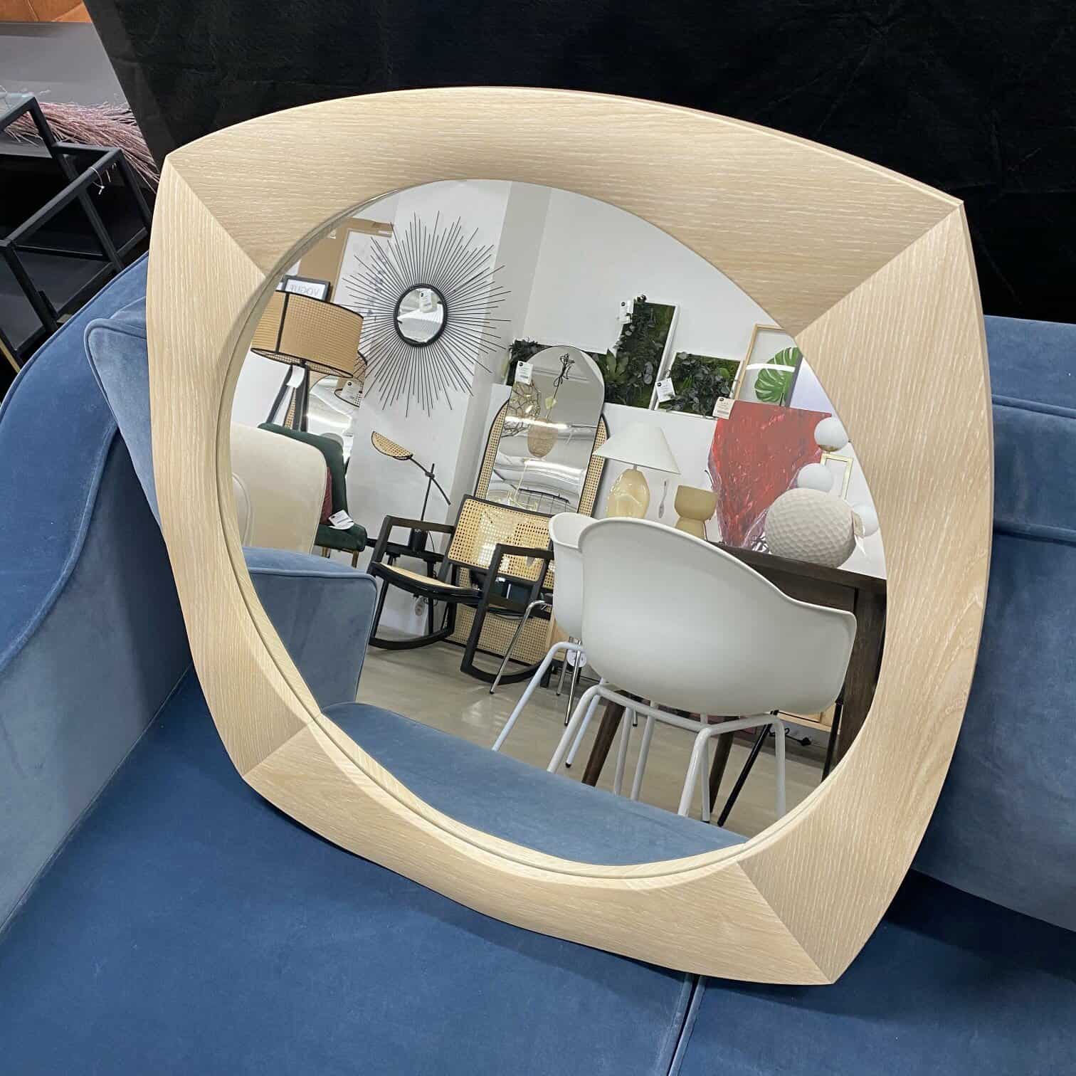 Spogulis būs lielisks akcents jebkurā interjerā. Kvadrātainā un izliekumiem piepildītā rāmja forma un apaļais spoguļa stikls piešķir tam eleganci. Gaišais rāmis ar koka rakstu īpaši iederēsies gan minimālistiskā, gan klasiskā, gaišā interjerā.
