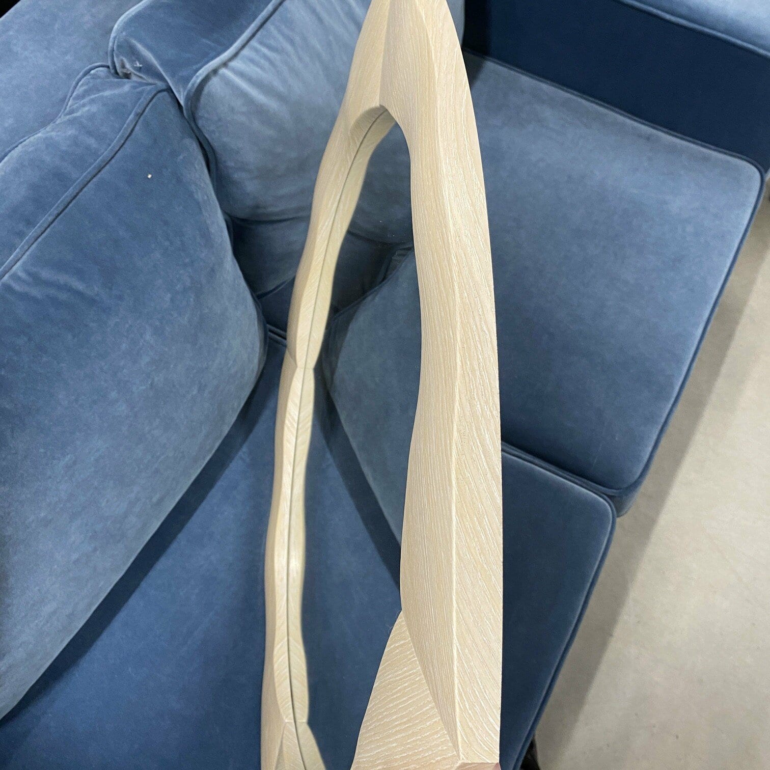 Sienas spogulis Emory ir ar gaišu finiera rāmi.