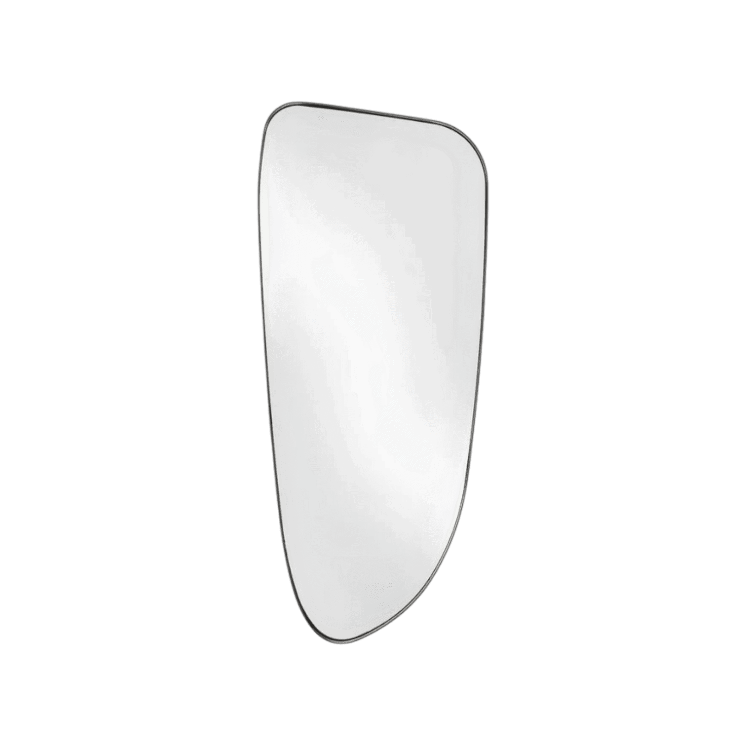 Moderns un stilīgs spogulis ar asimetrisku formu, kas piešķir interjeram dinamiku un māksliniecisku noskaņu. Plānais metāla rāmis elegantā melnā tonī rada vieglu un gaisīgu sajūtu, padarot spoguli piemērotu gan minimālistiskiem, gan mūsdienīgiem interjeriem. Lieliski iederēsies viesistabā, guļamistabā, priekšnamā vai garderobē, piešķirot telpai oriģinalitāti un papildu vizuālo plašumu.