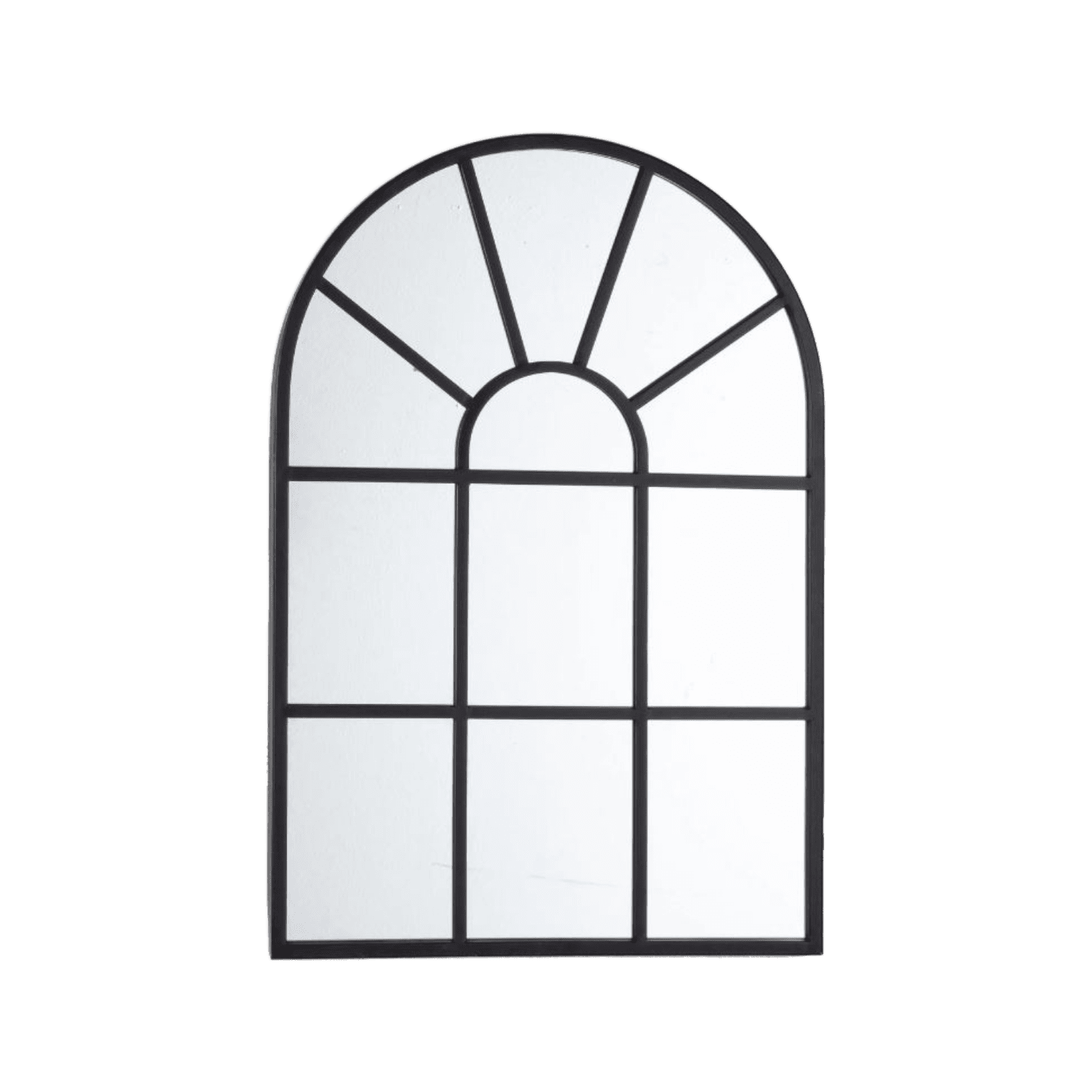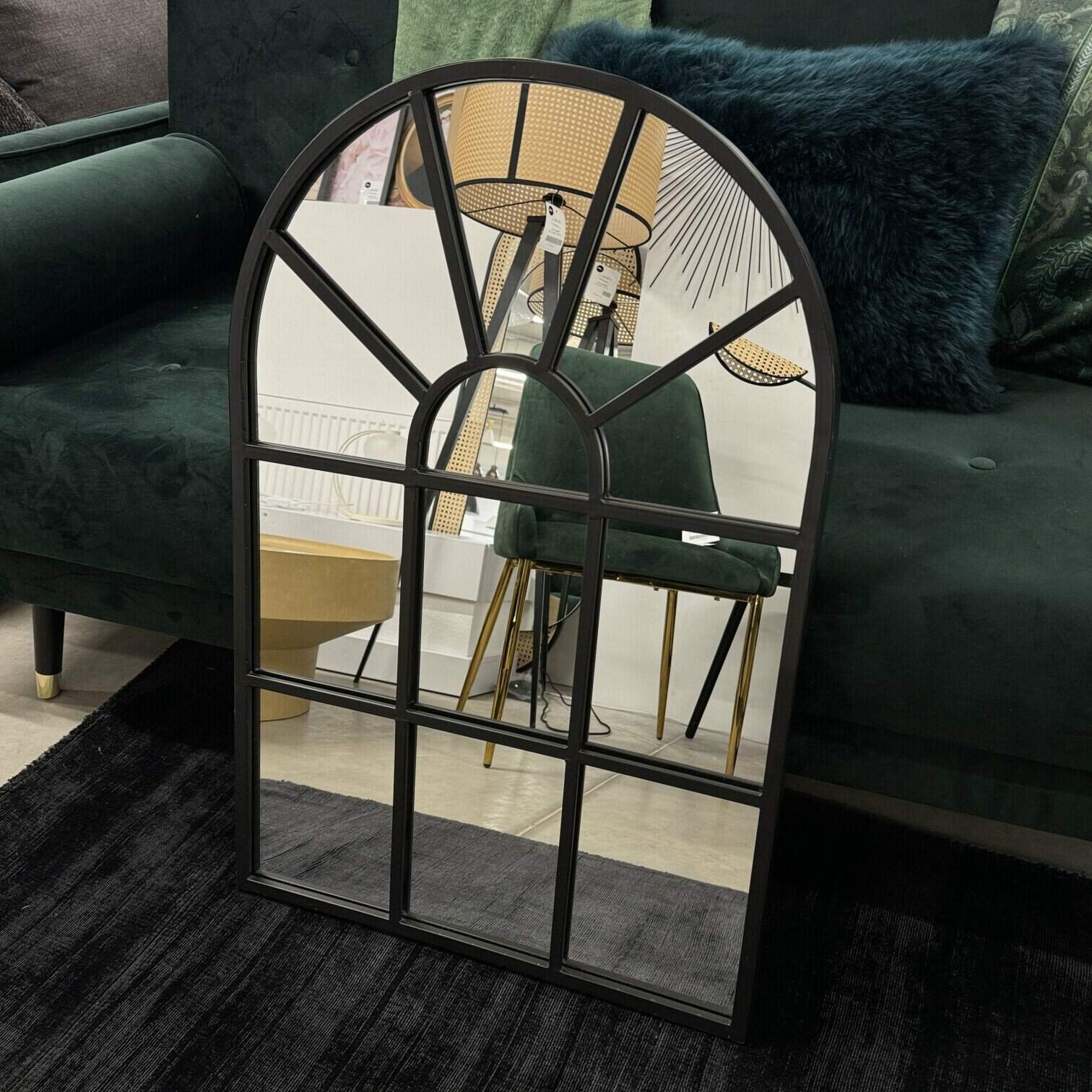 Rūpīgs dizains un moderna elegance – šis pusapaļais spogulis ir kā māksliniecisks logs jūsu telpā. Melnā rāmja līnijas piedāvā mūsdienīgu un stilīgu pieskārienu, vienlaikus saglabājot izsmalcinātību.