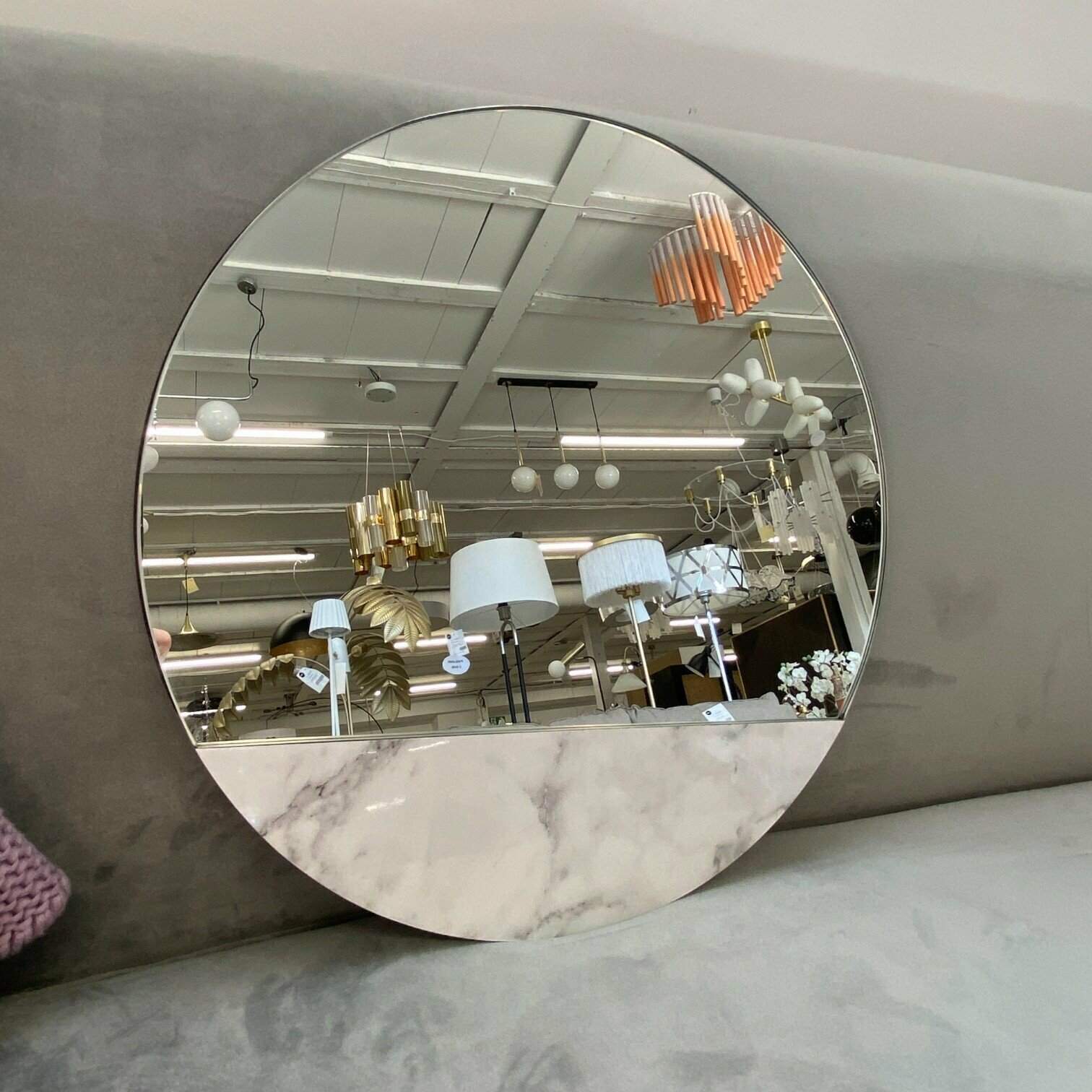 Šis nelielais, apaļais spogulis ar marmora imitāciju iederēsies gandrīz jebkurā vannas istabā.