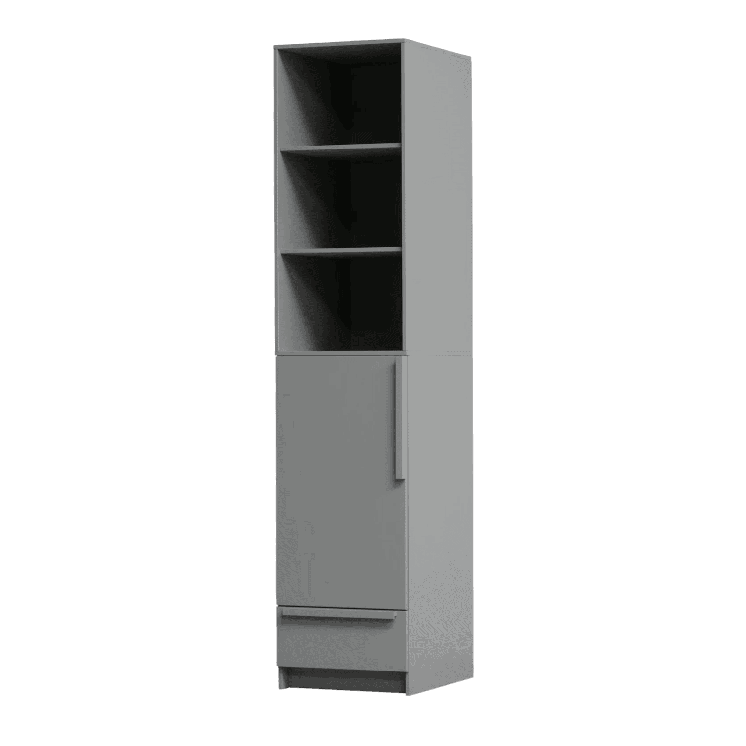 Augšdaļā izvietoti 3 atvērti plaukti- ideāli piemēroti grāmatām, dekorācijām vai dokumentiem. Apakšdaļā atrodas 2 slēgti nodalījumi ar veramām durvīm, kas palīdz noslēpt mantas no skatiena un uzturēt vizuālu kārtību. Papildus ērtībai skapis aprīkots ar 1 ietilpīgu atvilktni sīklietu glabāšanai.