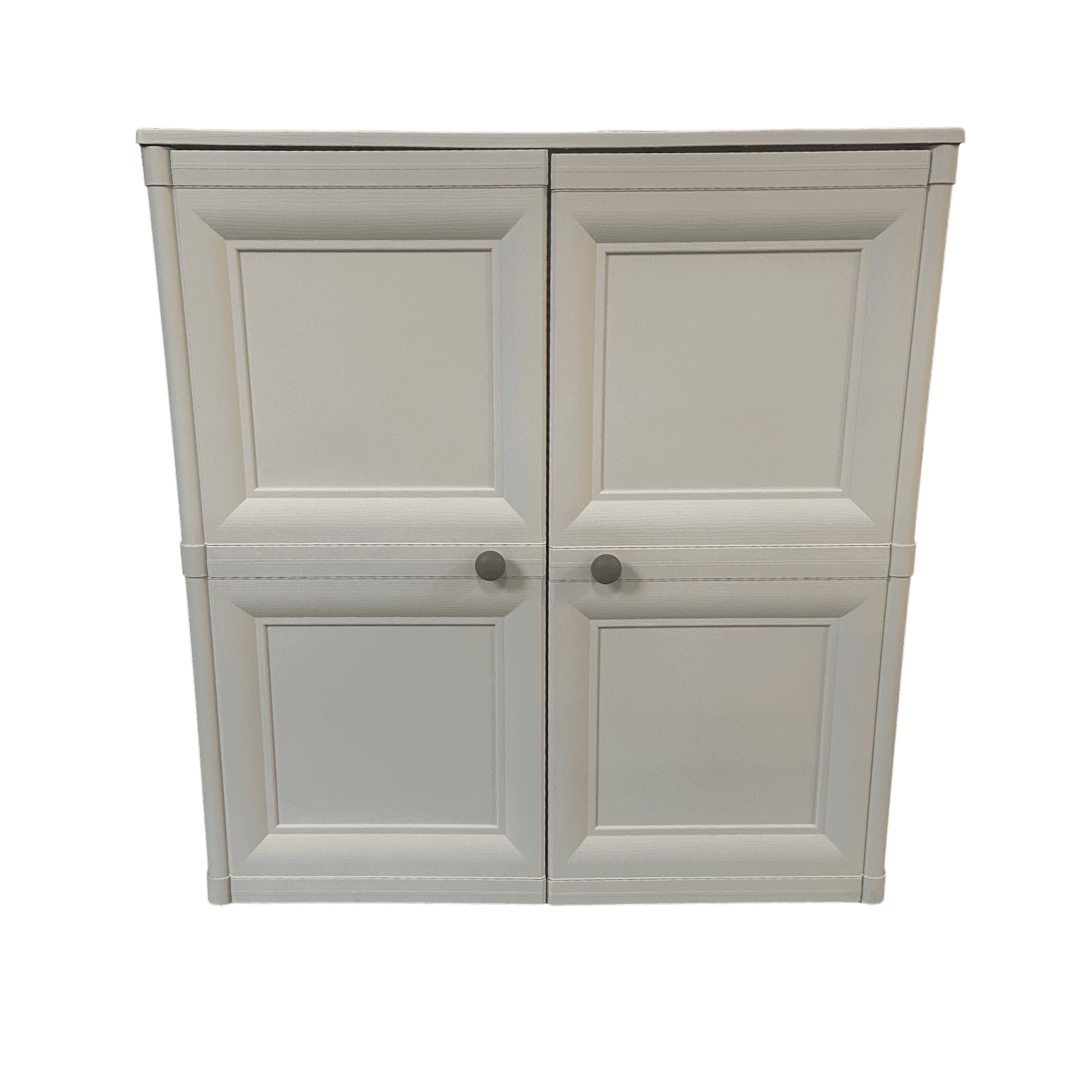 Šis plastmasas skapis lieliski pildīs savu funkciju koridorā vai saimniecības telpā.