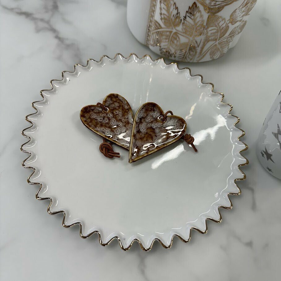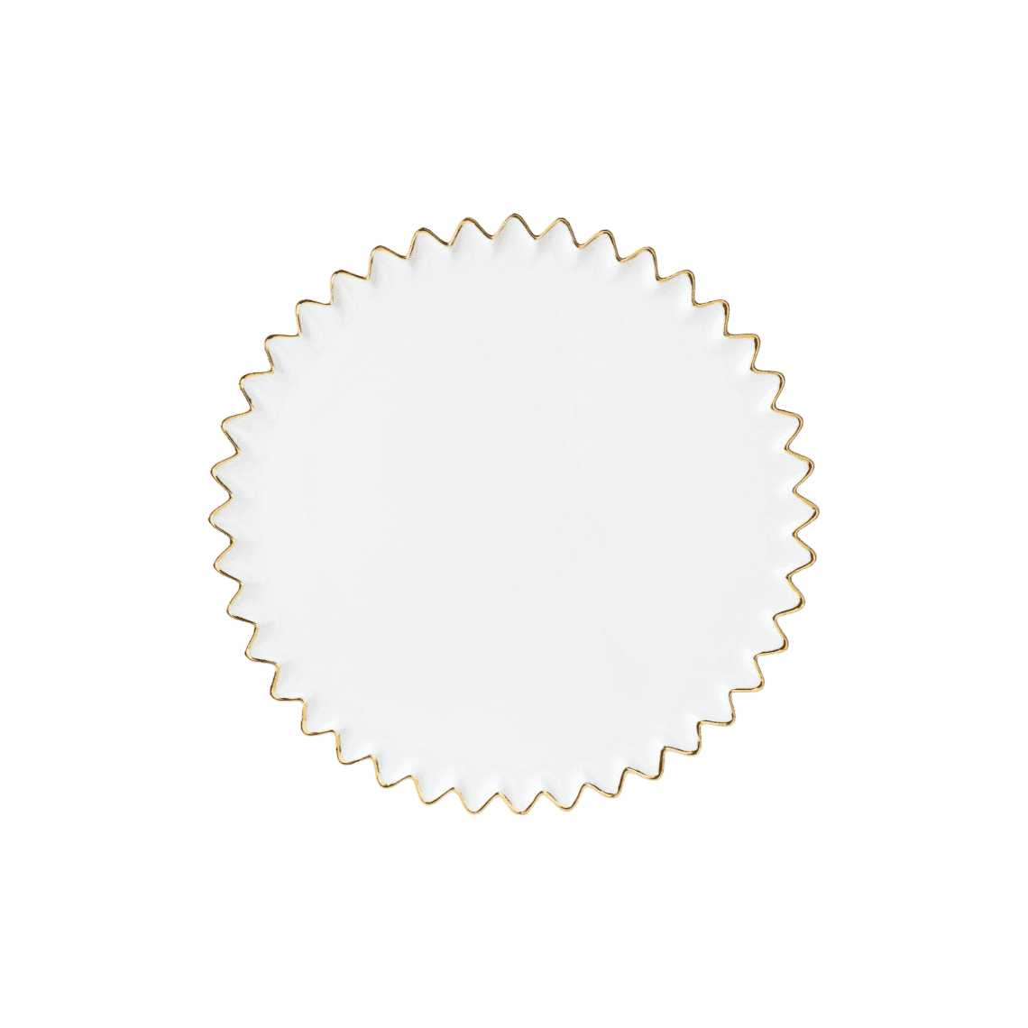Šim porcelāna šķīvim ir zeltaini rievotas malas, kas lieliski kalpos kā servēšanas trauks saldumiem vai citiem Ziemassvētku našķiem.