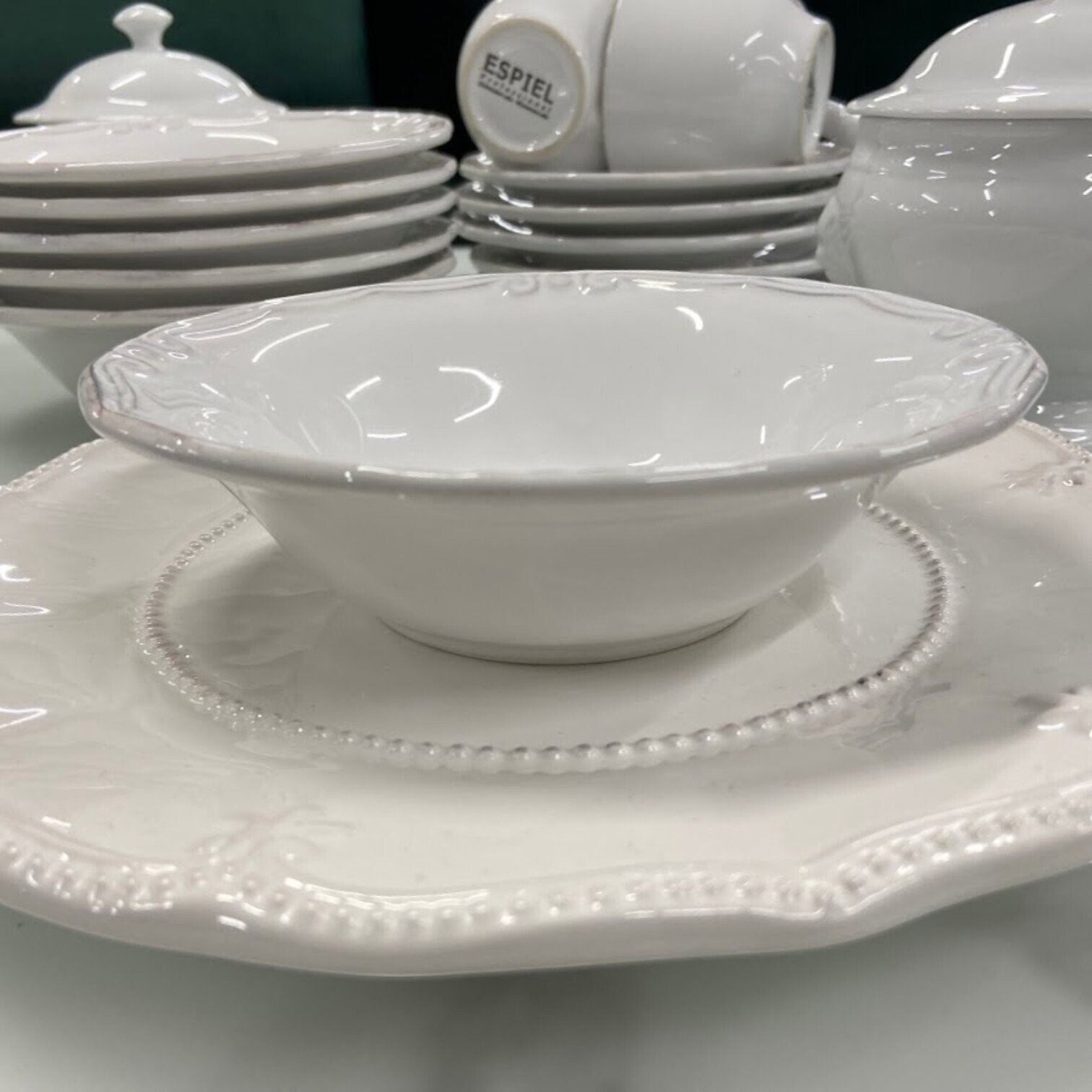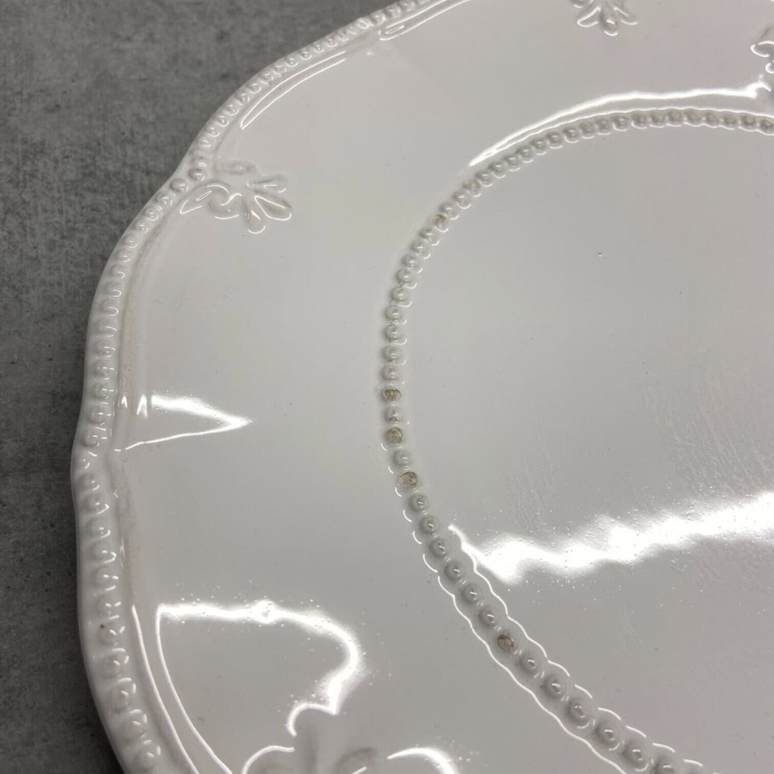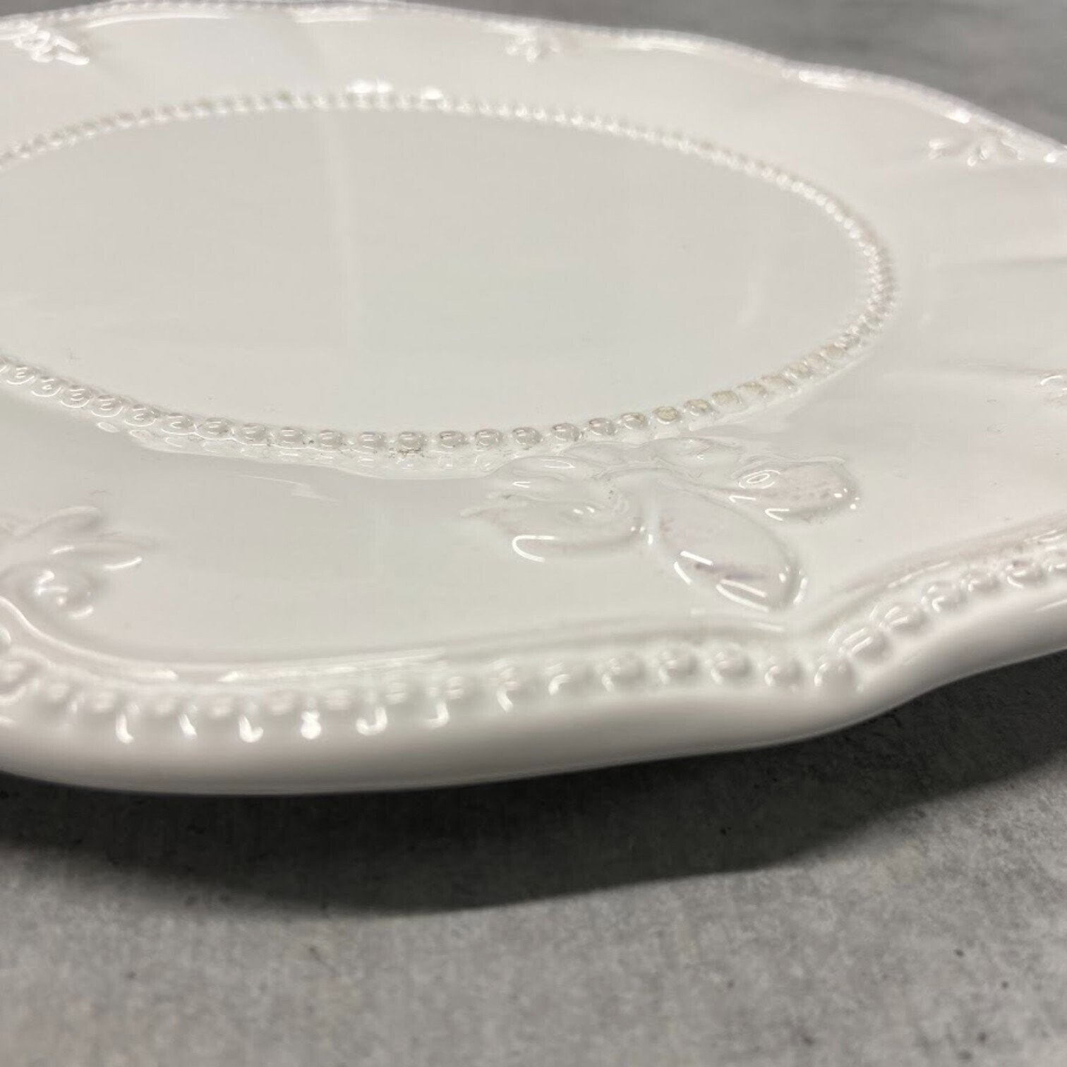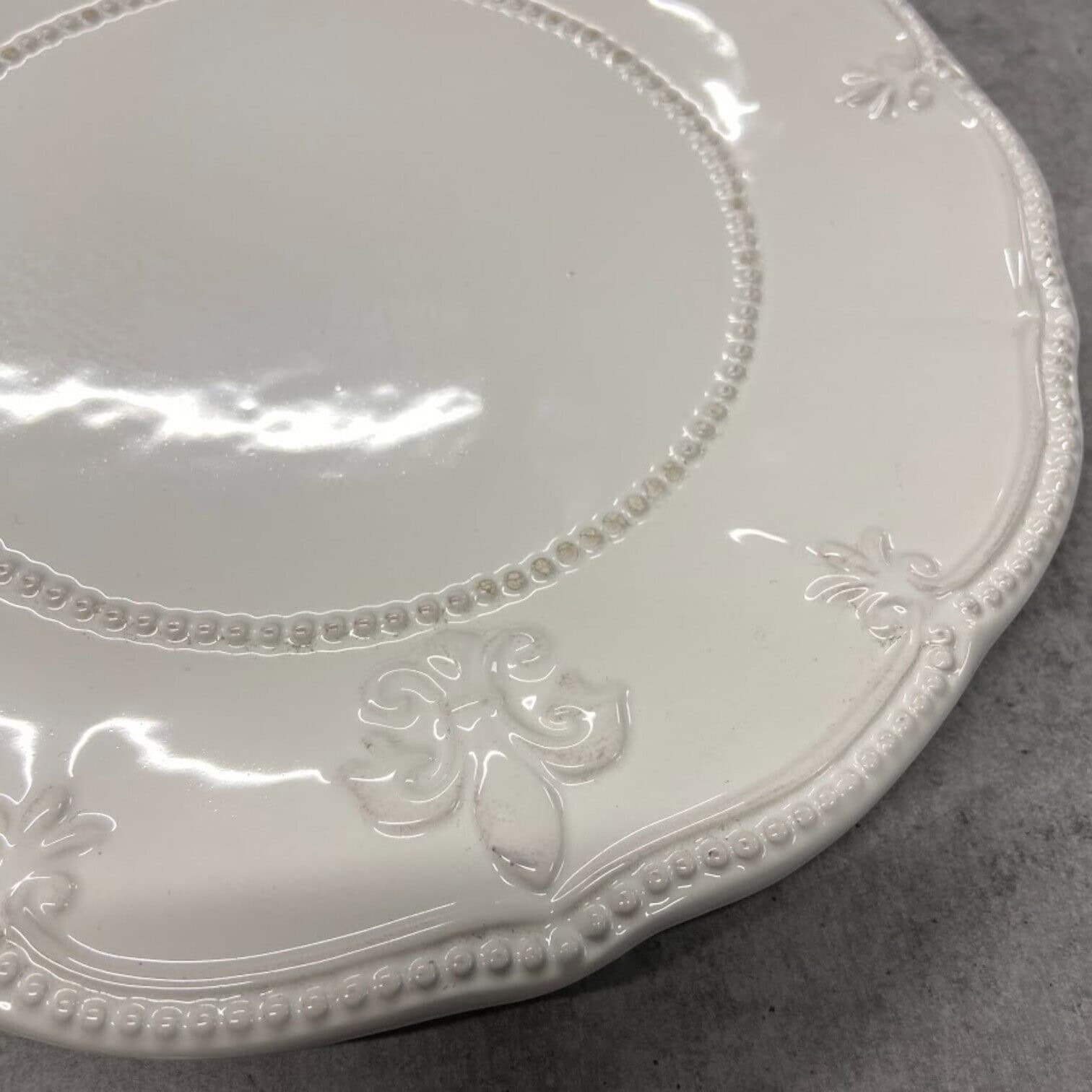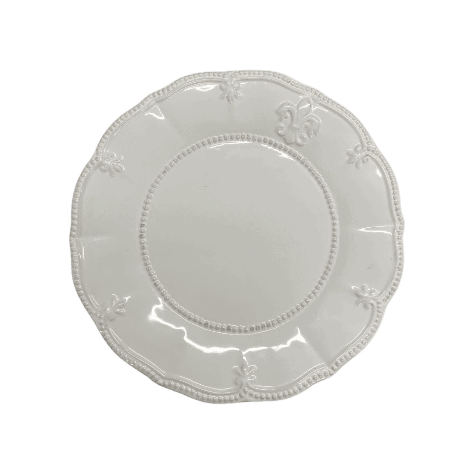 Balts porcelāna šķīvis ar dekorētu franču liliju. Šķīvis lieliski papildinās jebkuru galda klājumu piešķirot tam īpašu franču noskaņu.