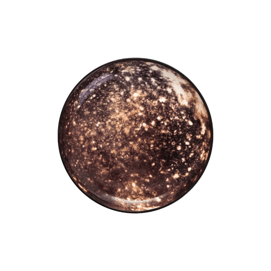 Visuma iedvesmota vizionāra un poētiska kolekcija. Šķīvji ar valdzinošiem attēliem, galda piederumi un aksesuāri ar bronzas apdari, iedvesmojoties no kosmosa.