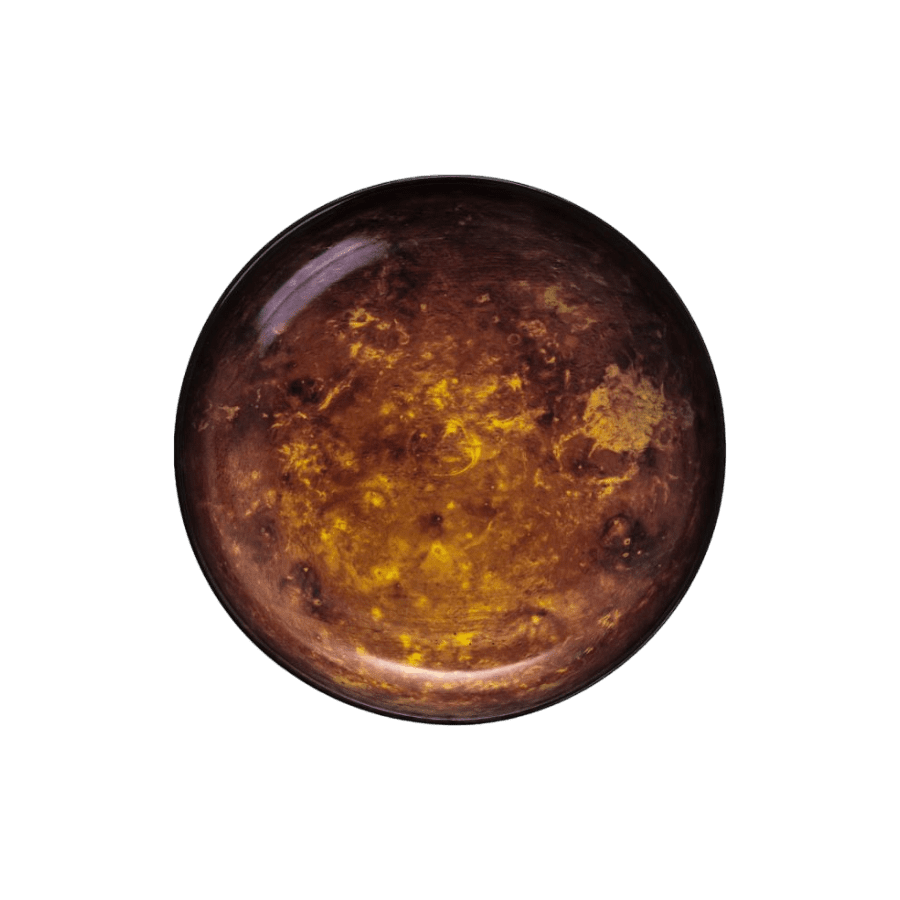 Visuma iedvesmota vizionāra un poētiska kolekcija. Šķīvji ar valdzinošiem attēliem, galda piederumi un aksesuāri ar bronzas apdari, iedvesmojoties no kosmosa.