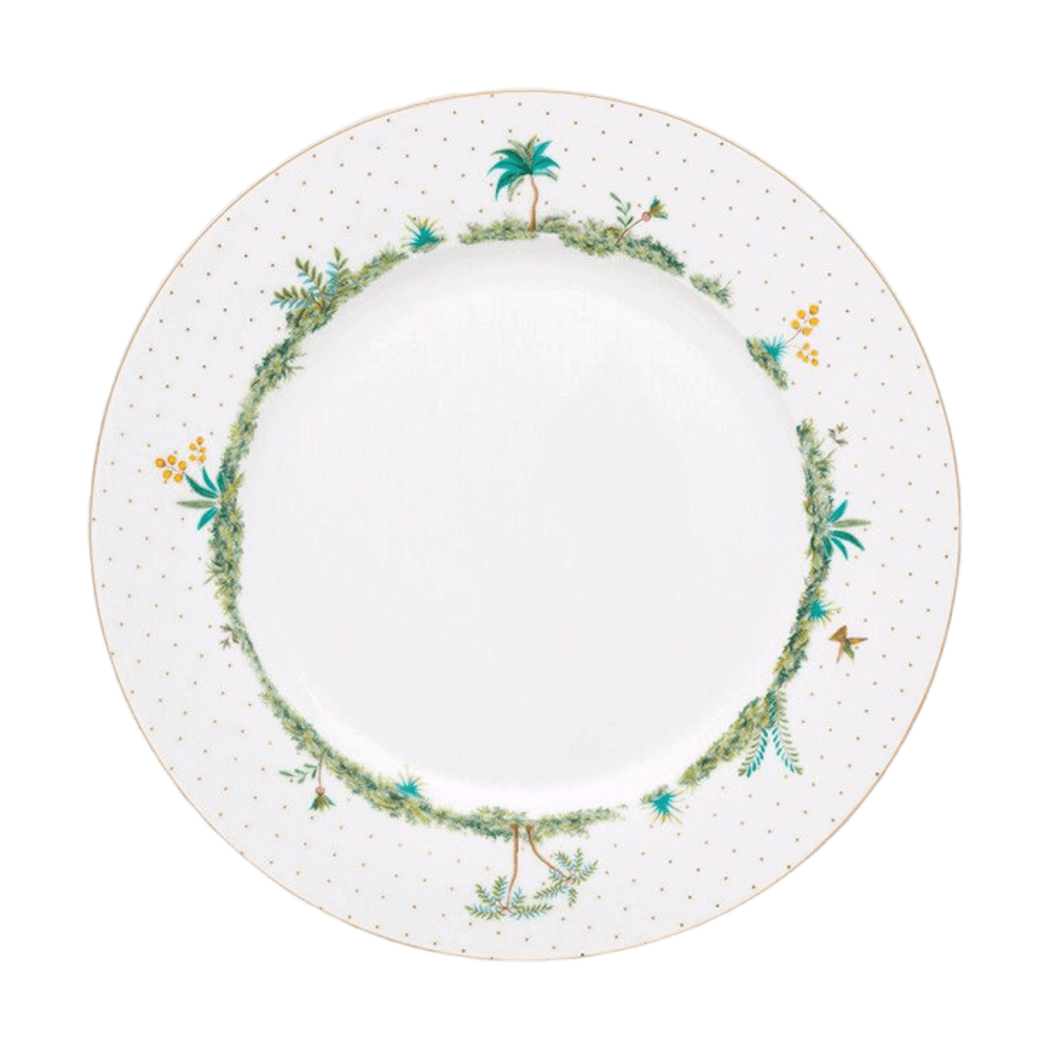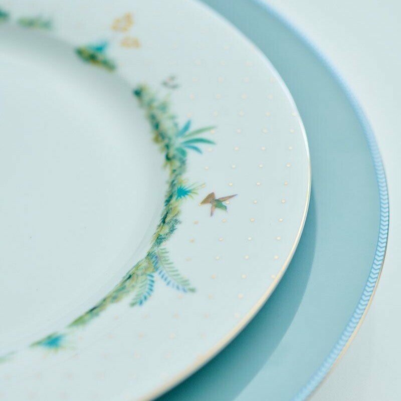 Vai vakariņojat kopā ar ģimeni vai draugiem? Šis vakariņu šķīvis ir lieliski piemērots stilīgām vakariņām. Šķīvim ir balts fons ar zeltainiem punktiem, un tā mala pa diametru ir dekorēta ar eksotiskiem augiem. Lieliski piemērots kombinēšanai ar citiem Jolie kolekcijas šķīvjiem.