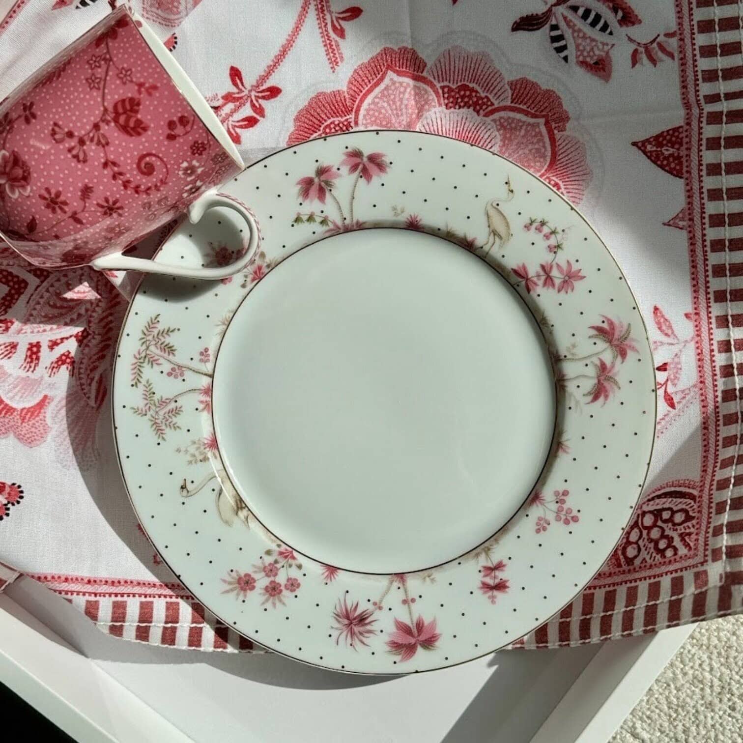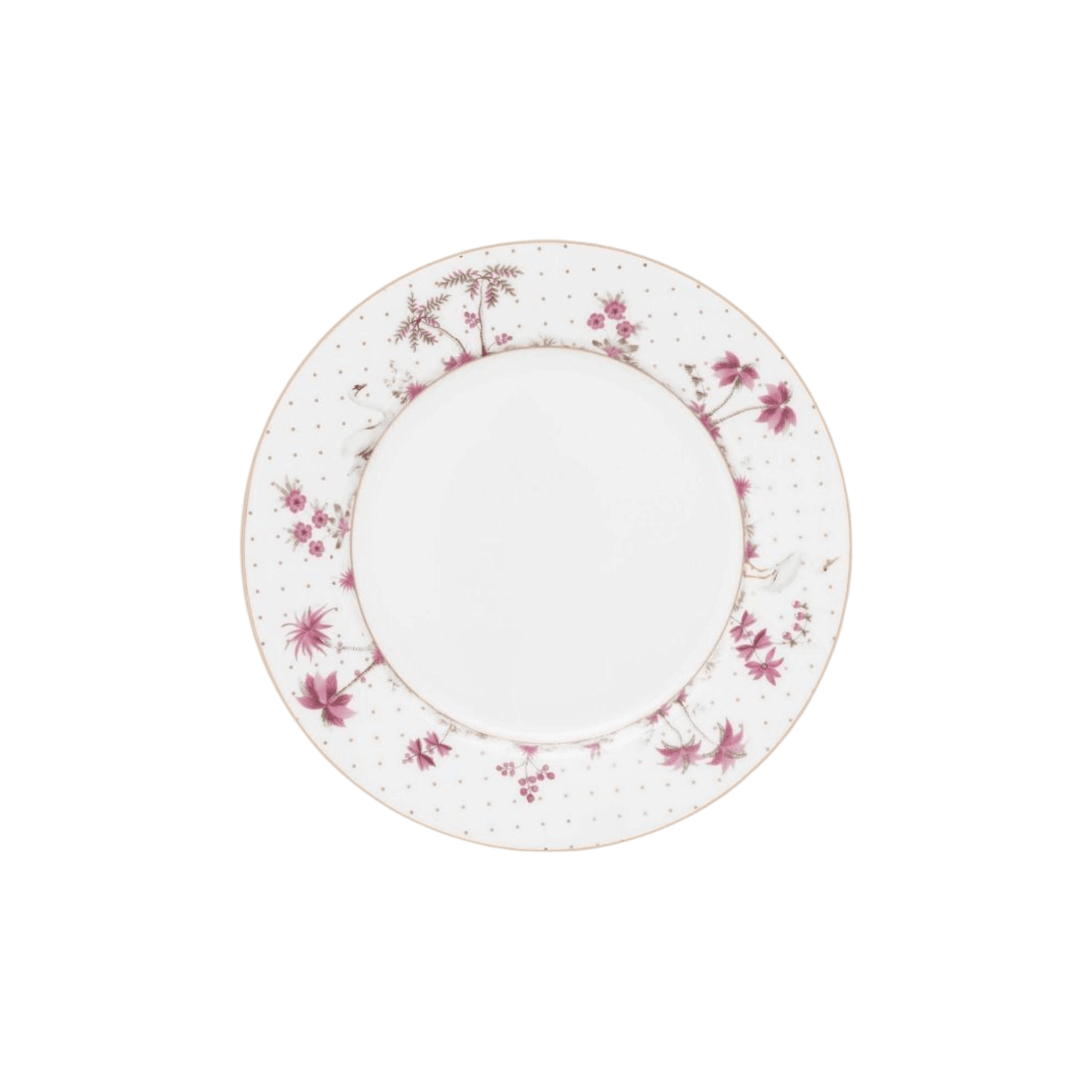 Šis brokastu šķīvis ir lieliski piemērots nesteidzīgiem, mājīgiem rītiem. Šķīvim ir balts fons, ko smalki rotā zelta punktiņi, piešķirot tam elegantu un izsmalcinātu izskatu. Ap centra daļu attēlotas augu ilustrācijas, baltais gārnis un gulbis, kas kopā veido romantisku un sapņainu noskaņu.