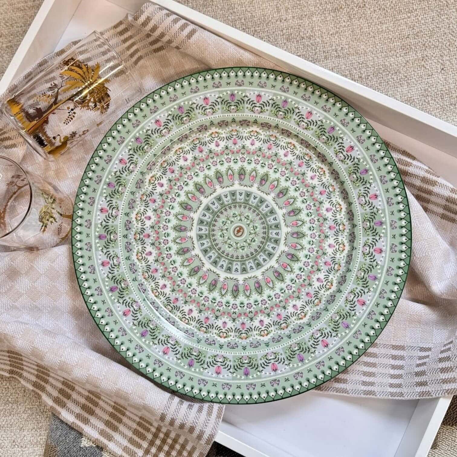 Šķīvis Lily&Lotus Moon Delight Light Green no Pip Studio “Lily & Lotus” kolekcijas ir īsts galda rotājums. Tā virsmu sedz kaleidoskopisks raksts, kas veidots no simtiem sīku ziedu un lapu, piešķirot šķīvim izteiksmīgu, bet vienlaikus harmonisku izskatu. Gaiši zaļais tonis piešķir traukam svaigumu un eleganci.