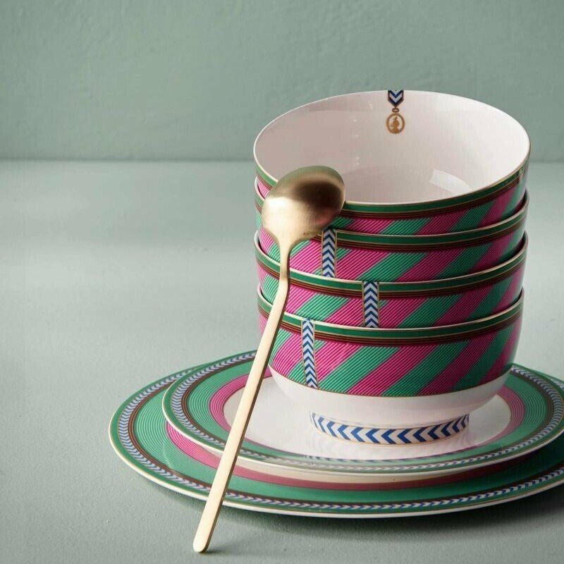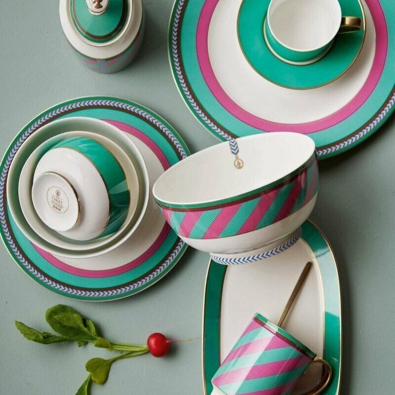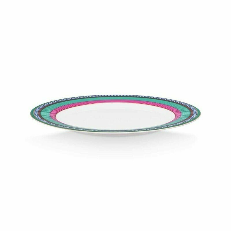 Šim šķīvim ir rozā un zaļš svītrains raksts ar baltu fonu centrā. Šķīvja apdari rotā zelta krāsas detaļas un zilas un baltas rombveida figūras, un tas ir lieliski piemērots kombinācijai ar citiem šīs kolekcijas šķīvjiem vai Royal Stripes kolekcijas šķīvjiem. Pieejami arī šādi izmēri: 28 cm Apskatiet visu Pip Chique Stripes kolekciju, lai gūtu vairāk iedvesmas.