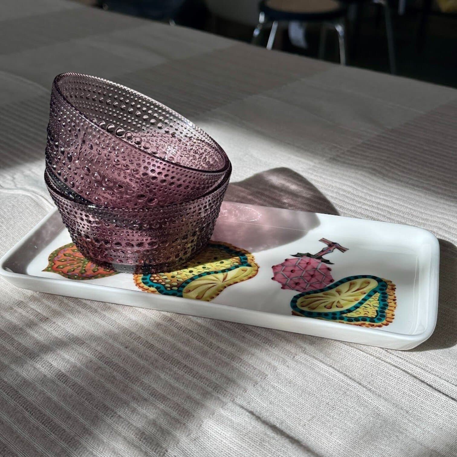 Šķīvis Taika Sato ir lieliski piemērots gan ēdiena pasniegšanai, gan kā interjera dekors, piešķirot telpai dzīvotspēju un šarmu. Klausa Haapaniemi burvīgās ilustrācijas apvienojumā ar Heikki Orvola radītajām skaidrajām un vienkāršajām formām rada unikālu dizainu, kas ir gan mākslinieciska, gan funkcionāla izvēle.
