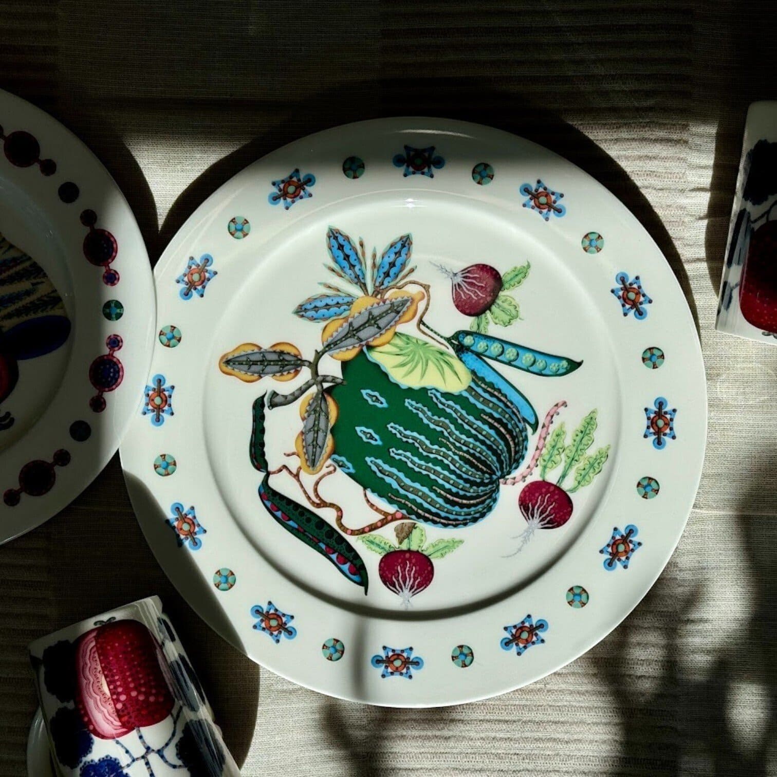 Šķīvis Taika Sato ir burvīga Klausa Haapaniemi mākslas un Heikki Orvola tīrā, funkcionālā dizaina kombinācija. Haapaniemi rotaļīgās klusās dabas ilustrācijas ar augļiem un dārzeņiem piesaista ikviena uzmanību, piešķirot galda klājumam dzīvotspēju un māksliniecisku šarmu. Šīs rotaļīgās, bet vienlaikus eleganti veidotās šķīvju formas ir ideāli piemērotas mājīgām vakariņām, klusām pasēdēšanām vai romantiskām vakariem.