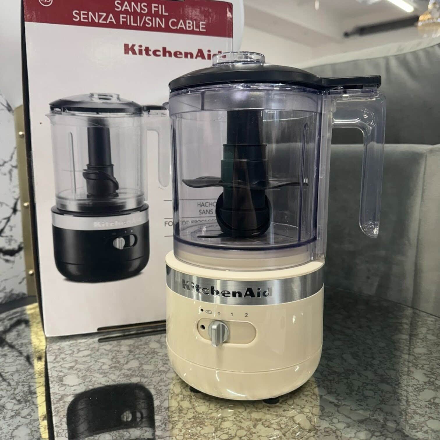 Šis bēšais KitchenAid bezvadu pārtikas smalcinātājs piedāvā ērtu un jaudīgu risinājumu, kas ļauj jums gatavot neatkarīgi no piekļuves elektrības kontaktligzdām. Ar uzlādējamu akumulatoru šis smalcinātājs nodrošina ilgu darbības laiku un spēj sasmalcināt līdz pat 40 sīpoliem ar pilnu uzlādi, padarot to ideāli piemērotu ēdiena gatavošanai jebkurā mājas vietā vai pārvietojoties virtuvē.