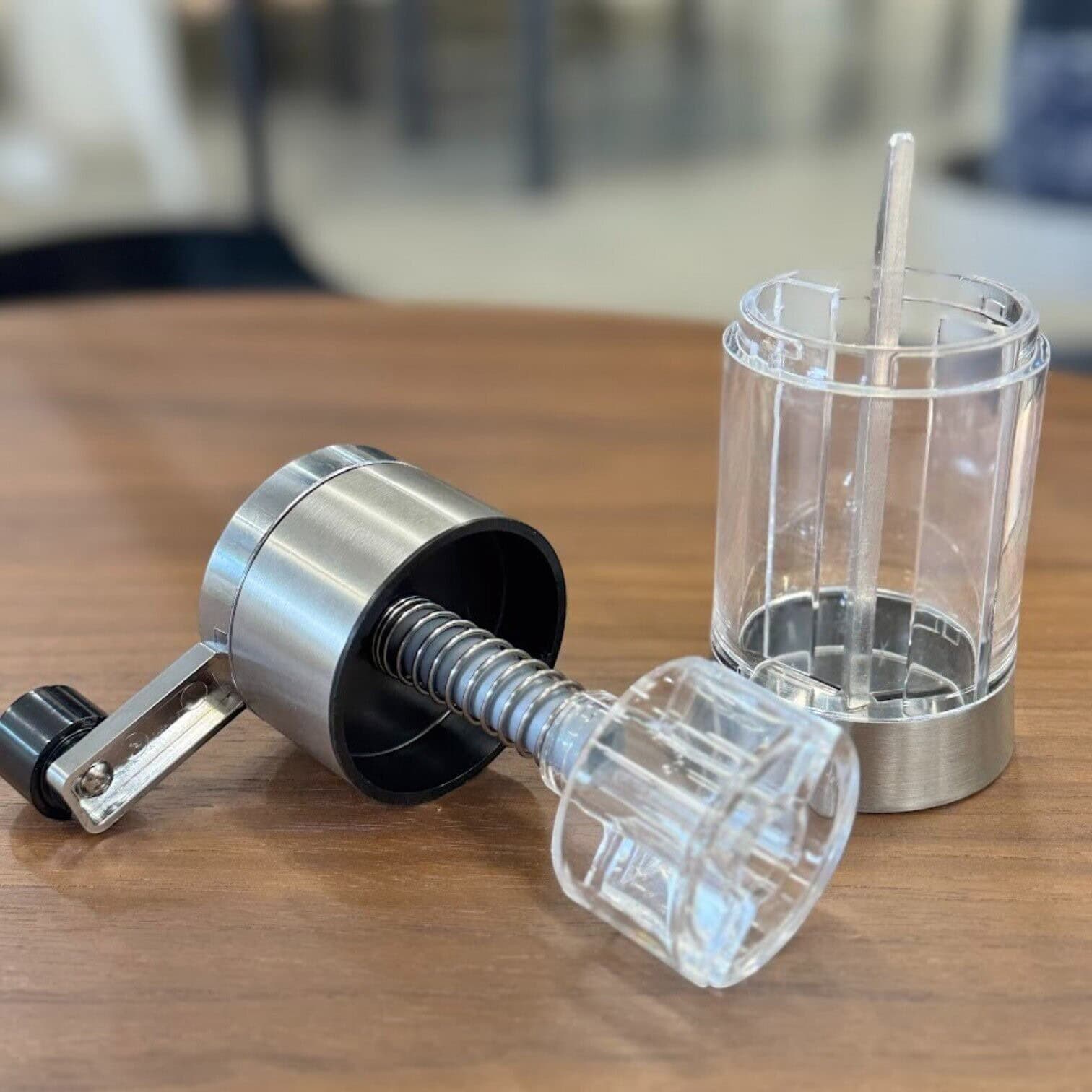 Šokolādes dzirnaviņas, Novi – Izsmalcināts dizains, kas apvieno modernu eleganci ar praktisku lietojamību. Šīs dzirnaviņas veidotas ar pārdomātu, ergonomisku formu un kvalitatīvu caurspīdīga un nerūsējošā tērauda materiālu kombināciju, kas iederēsies jebkurā virtuvē vai āra grilēšanas zonā. Kompaktais izmērs ļauj tās ērti novietot un izmantot dažādos apstākļos.