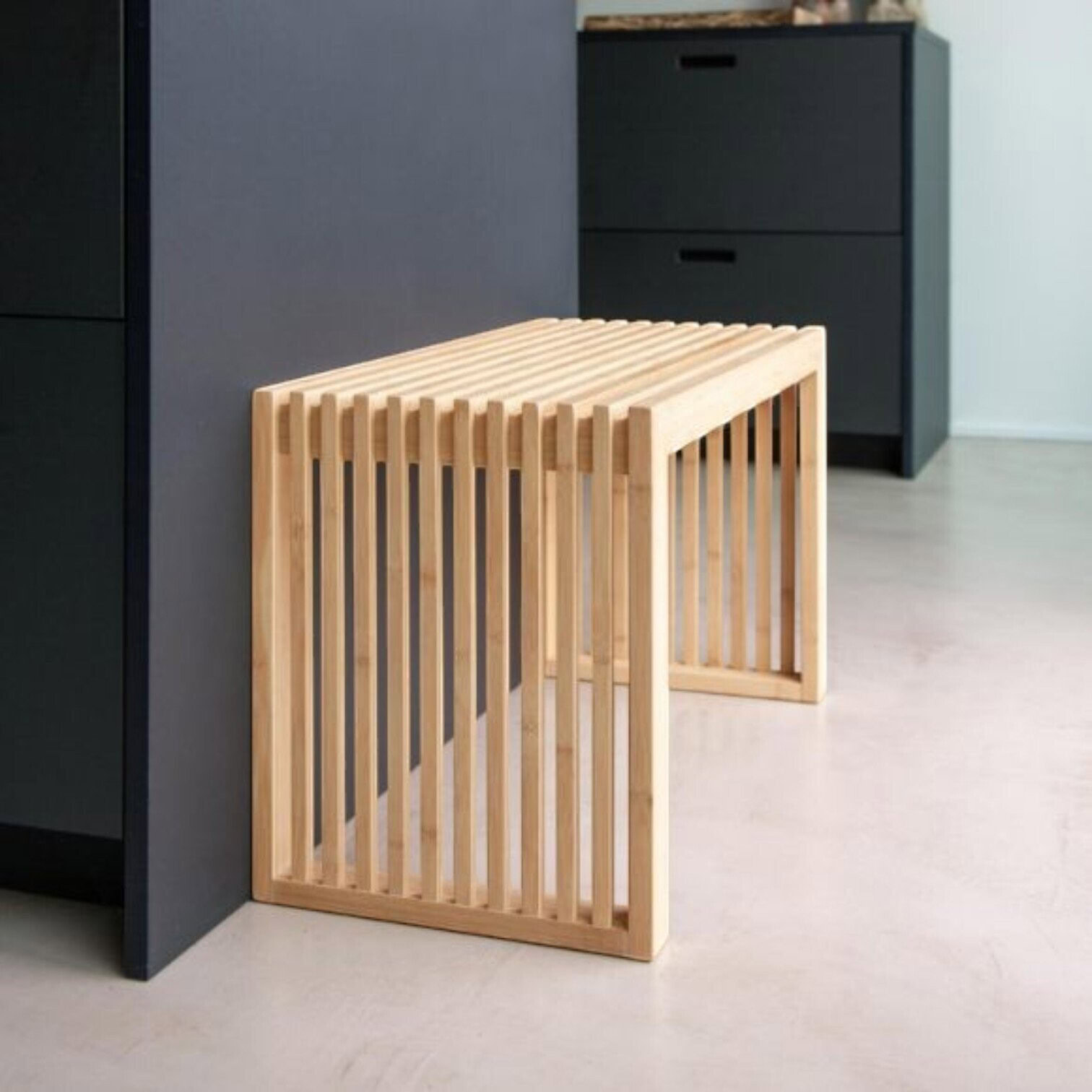 Spēcīgas horizontālas līnijas un vienmērīgi izvietoti dēļi rada bezgalības sajūtu un dinamisku akcentu. Rib taburete ar izteiktām līnijām, asām malām un precīzi izstrādātiem stūriem ir lieliski piemērota modernam un mūsdienīgam interjeram.
