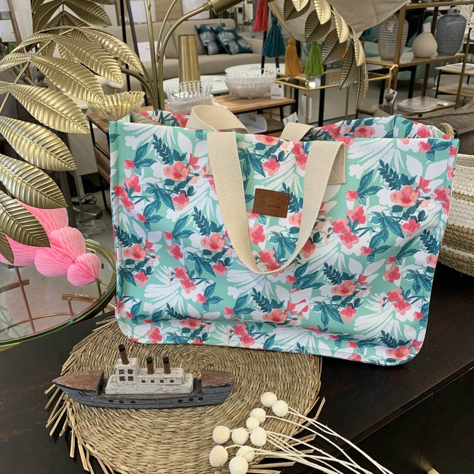Viegla pludmales soma ar krāsainu ziedu rakstuMateriāls: kokvilnaIzmērs: 20 X 47 X H36 cm