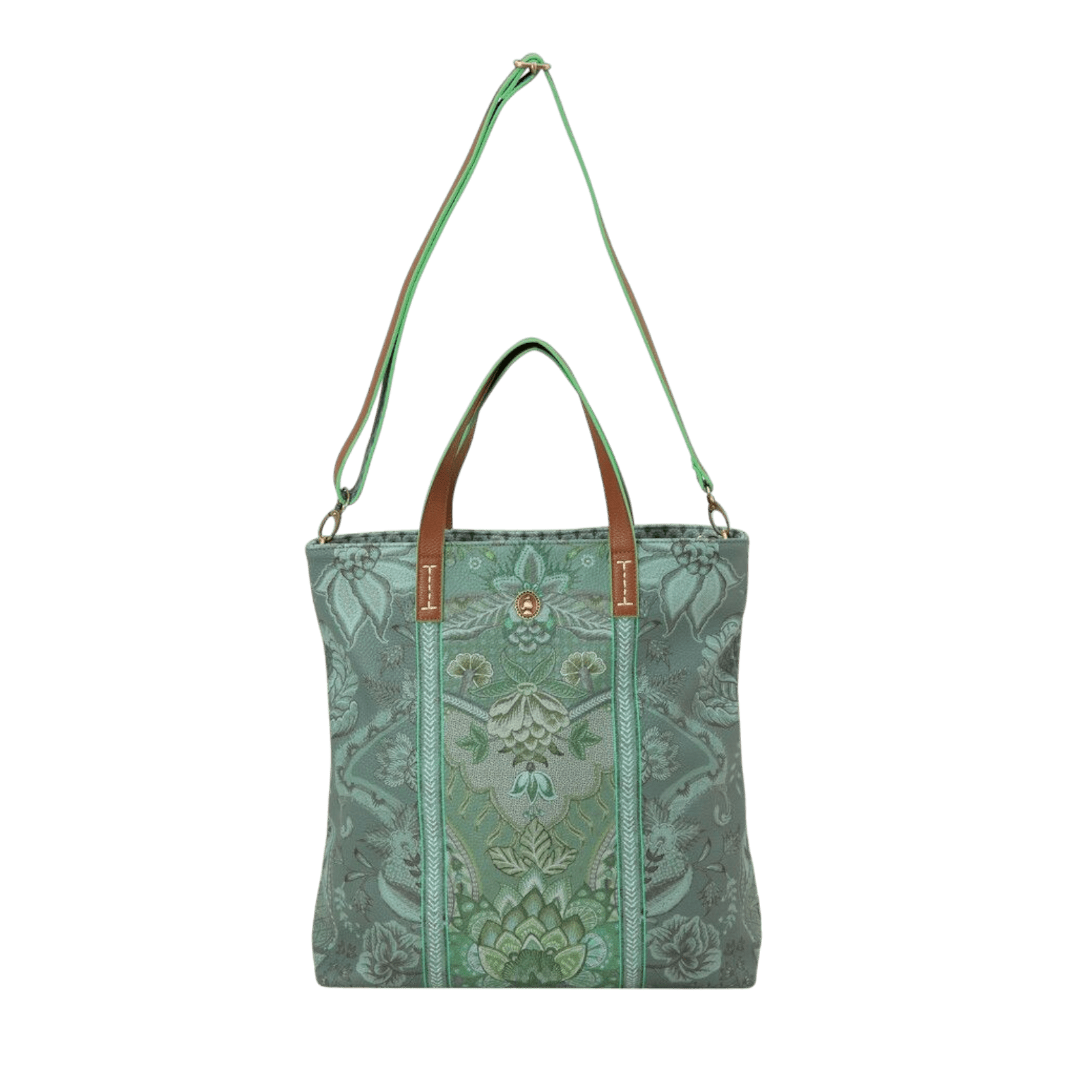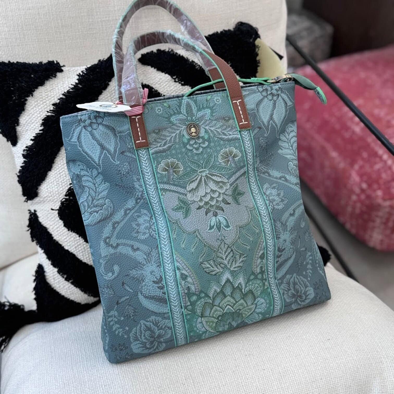 Kyoto Festival soma apvieno austrumniecisku šarmu un modernu eleganci. Tās dizains rotāts ar izsmalcinātiem ziedu un lapu rakstiem uz zaļa fona, kas piešķir somai unikālu un stilīgu izskatu.