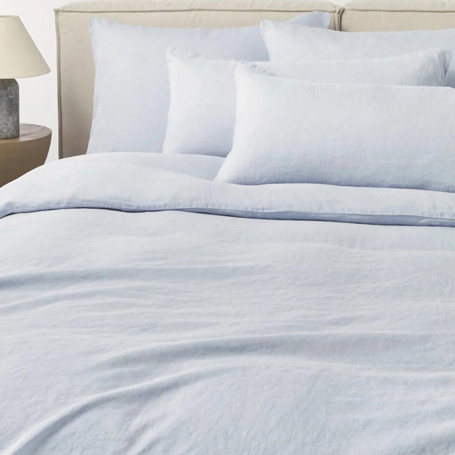 Īpašais mazgāšanas process padara audumu mīkstu, viegli krunkotu un īpaši patīkamu pieskārienam, saglabājot lina dabisko, eleganto tekstūru. Spilvendrāna aprīkota ar stilīgiem koka pogu aizdares elementiem, kas piešķir tai dabisku šarmu un vieglu bohēmisku noskaņu.