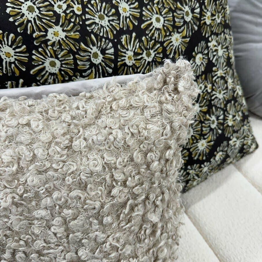 HARLOW spilvendrāna ir lieliski piemērota aukstajai sezonai un viegli kombinējama ar citiem spilveniem un spilvendrānām. Tās viena puse ir gluda samta, bet otra boucle audums.