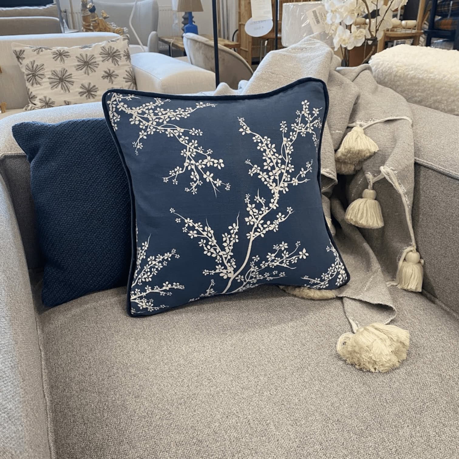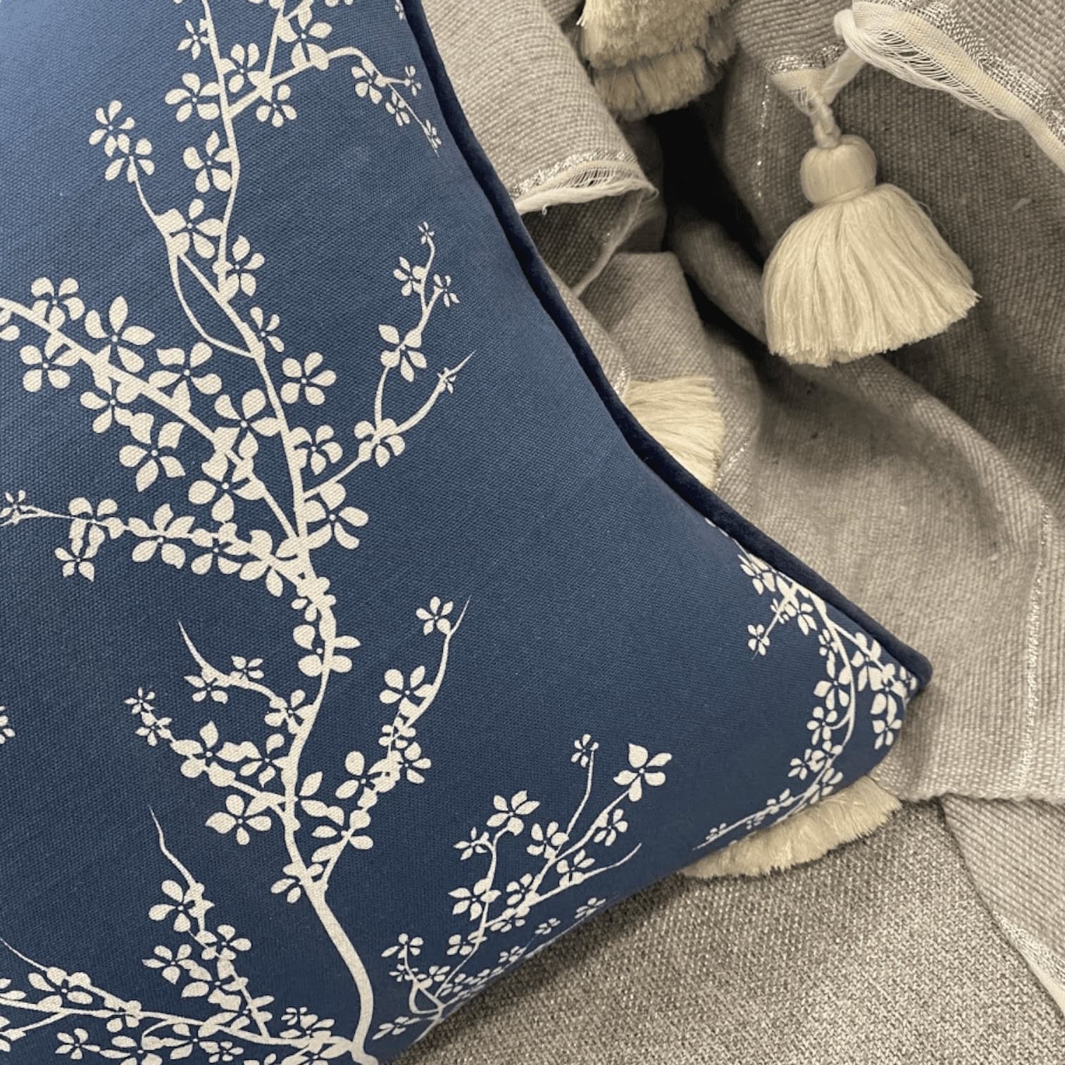 Spilvendrānu rotā balts ziedu raksts. Tās neitrālais dizains iederēsies jebkurā telpā, bet būs spējīga piesaistīt ikviena acu skatienus.