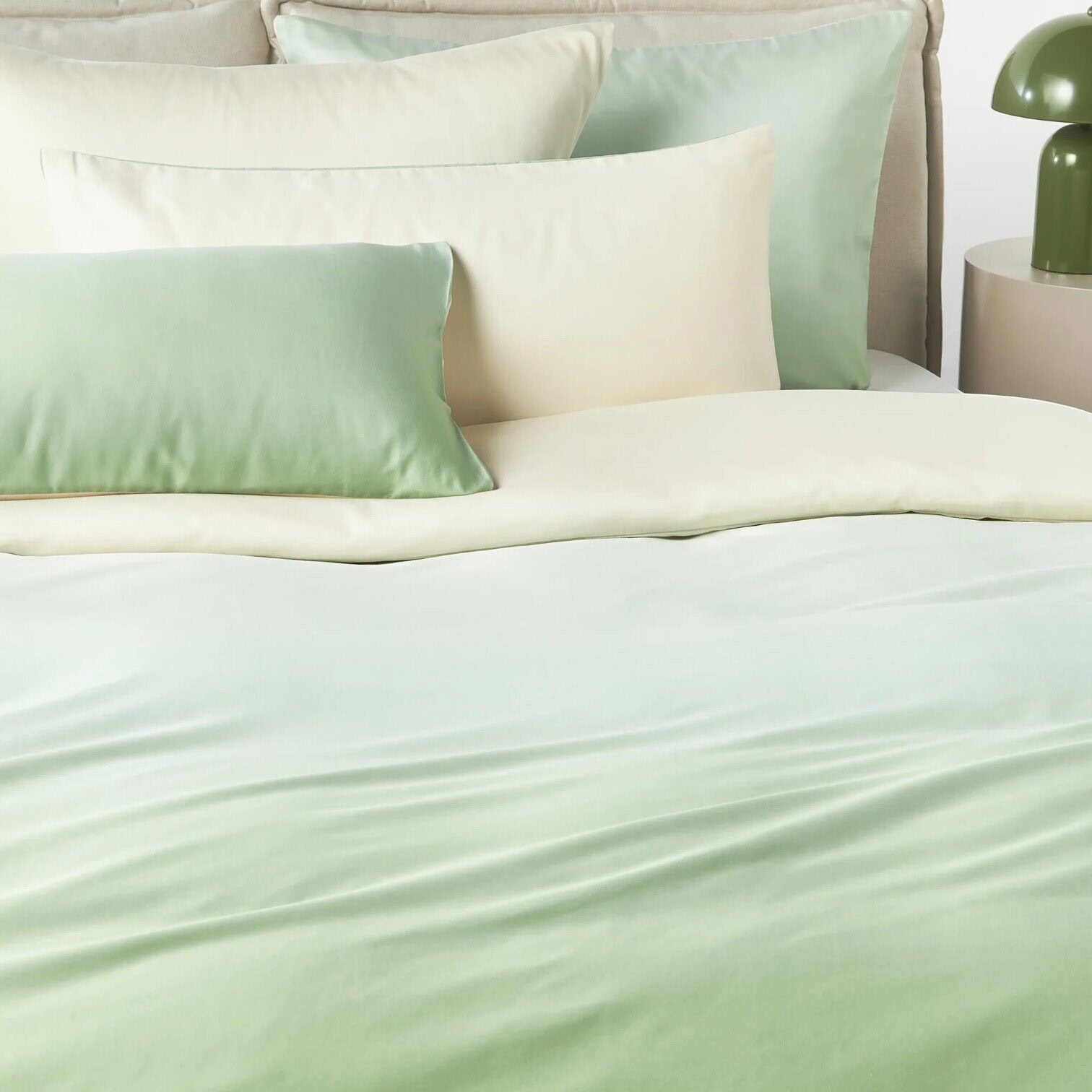 Spilvendrāna Jania piešķirs Jūsu guļamistabai īpašu vieglumu un izsmalcinātību. Tā veidota no augstas kvalitātes kokvilnas satīna, kas ir īpaši maigs, gluds un elpojošs. Priekšpusi rotā skaists zaļo toņu krāsu pārejas efekts, bet aizmugure ir krēmkrāsas – harmonisks un nomierinošs salikums, kas iederas dažādos interjera stilos.